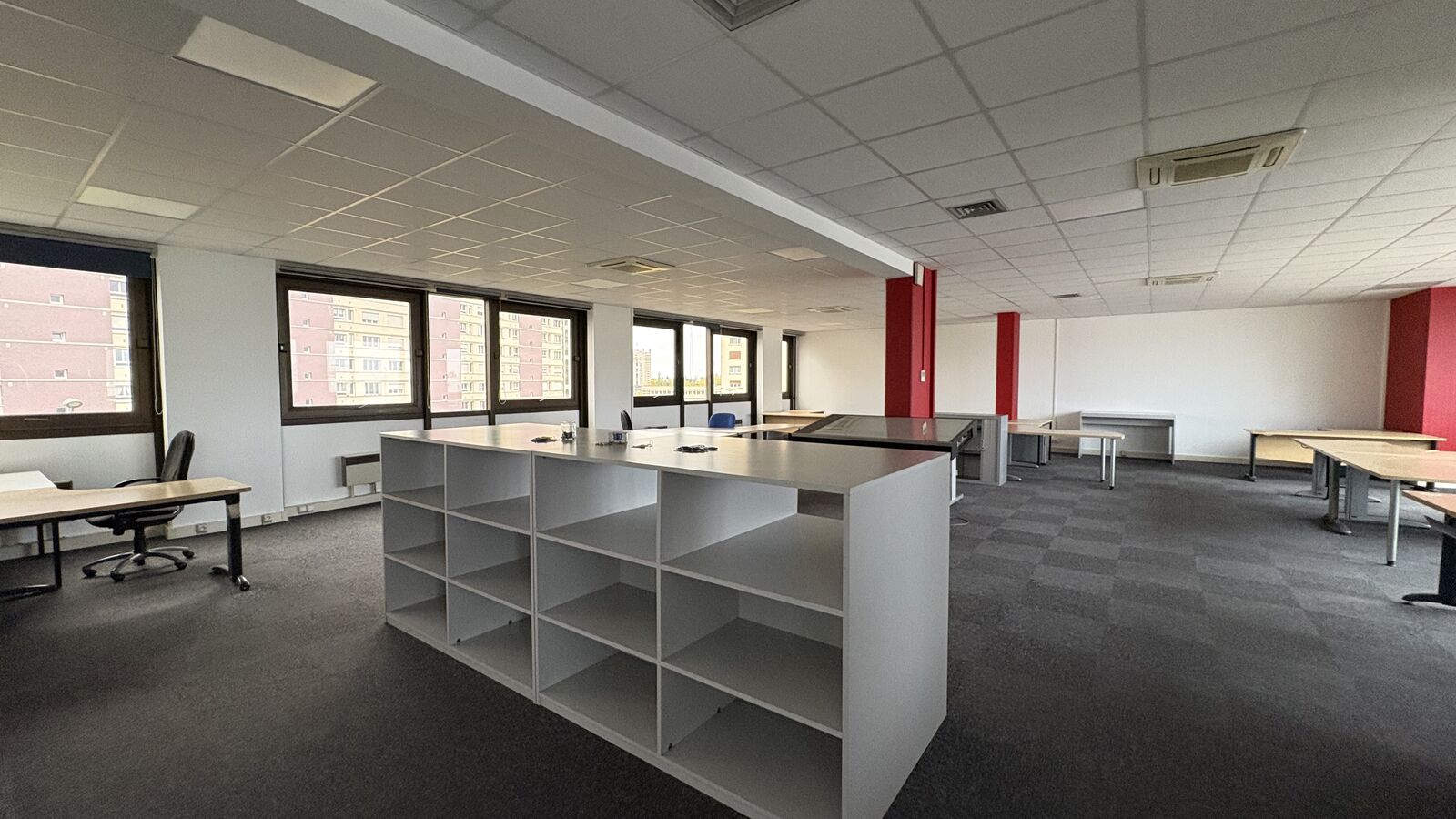 Aille gauche, un bureau d'accueil, un grand open-space, un bureau individuel ainsi qu'un local informatique.