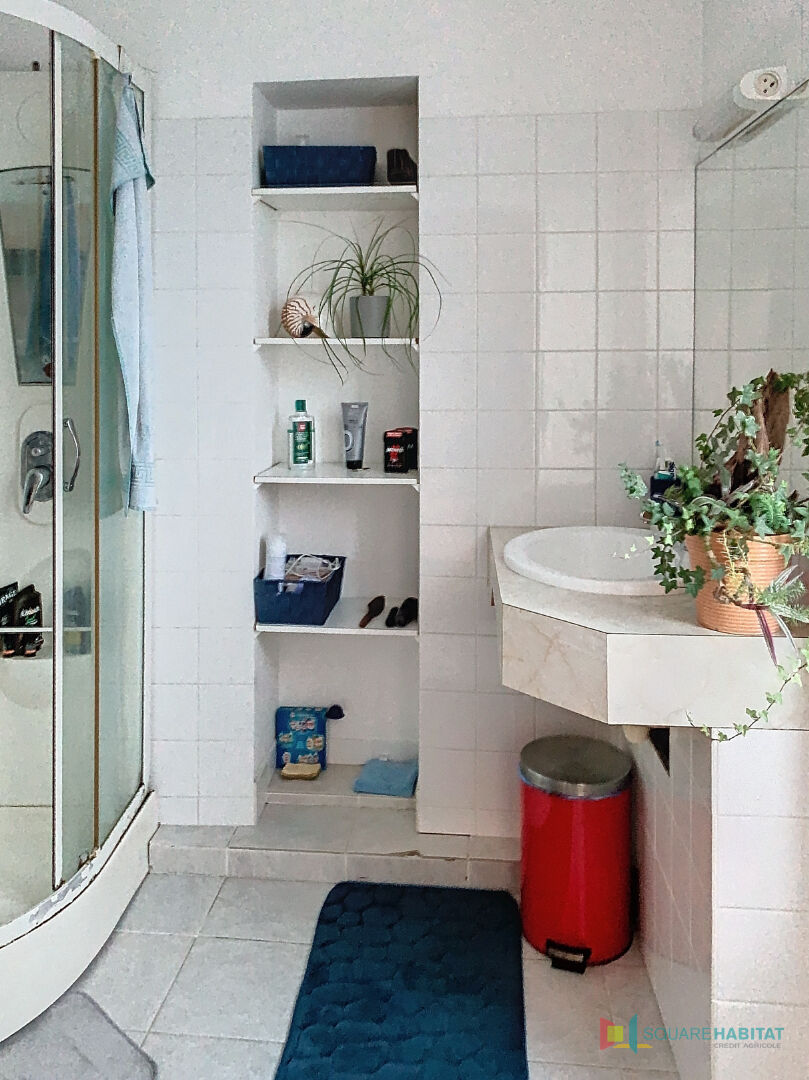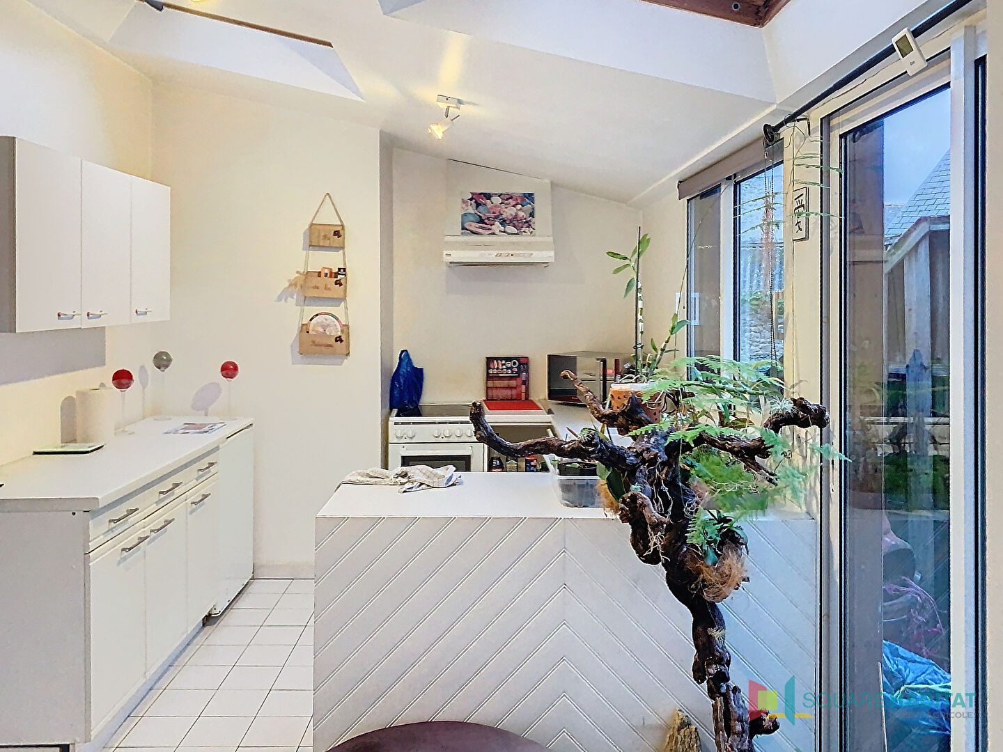 L'appartement au dessus, environ 70 m², possède son entrée indépendante, parfait pour de la location si besoin. Jolie cuisine lumineuse, arrière-cuisine, belle pièce de vie, WC, puis au deuxième, le palier désert deux chambres et une salle d'eau. Un grenier complète le bien.