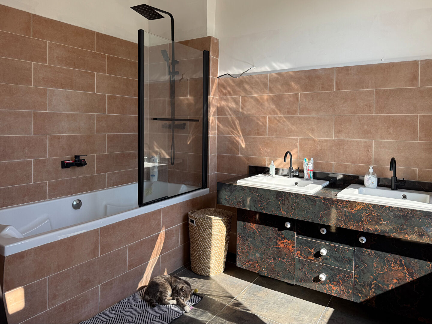 À l'étage, profitez de quatre chambres confortables, dont deux avec salle de bain privative et balcon, ainsi qu'un dressing et un WC indépendant.