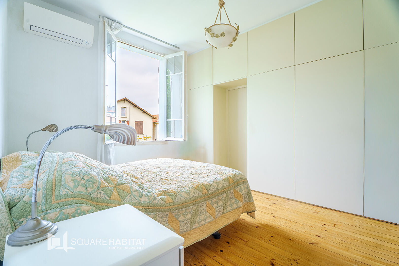 La maison se compose d'un grand séjour traversant de plus de 30m² avec un accès à un balcon donnant sur le jardin, une cuisine aménagée et équipée, une chambre parentale avec placards sur mesures et une salle d'eau et un toilette.
