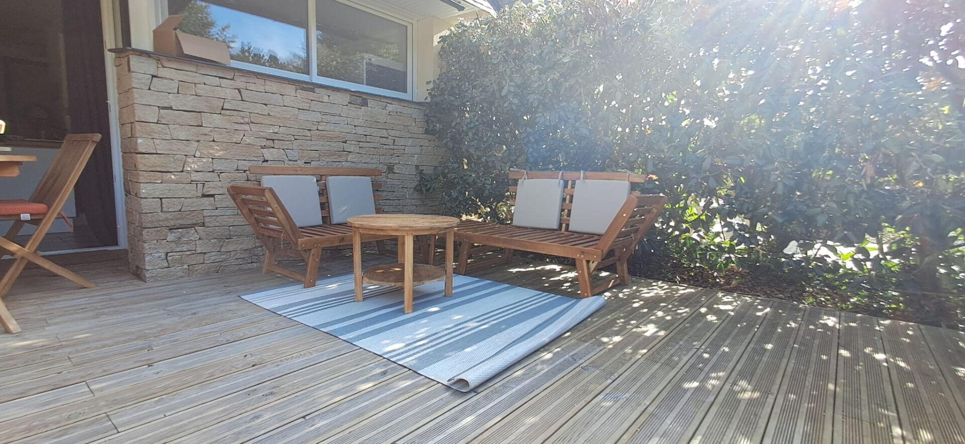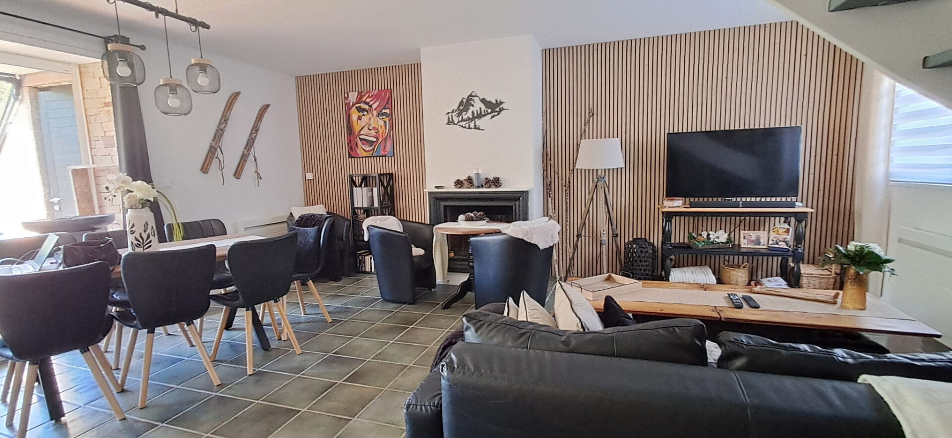 Un agréable salon-séjour avec cheminée et cuisine ouverte A/E avec accès direct à la terrasse et au jardin vous permettront une vie en extérieur des plus confortables, une salle d'eau et un wc indépendant