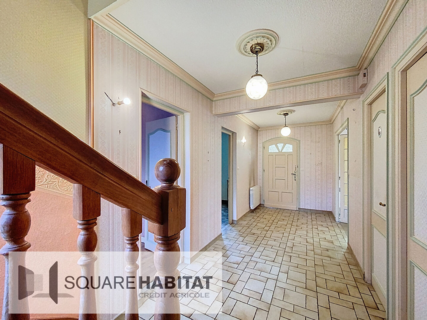 Proche centre-ville, dans un quartier résidentiel calme, maison construite en 1983 d'une surface habitable de près de 150m2, comprenant : une grande entrée, cuisine aménagée, salon/séjour avec cheminée ouvrant sur une véranda, une chambre, salle de bains, wc séparés, une pièce aménagée en bureau d'une surface de 18.90m2. A l'étage : palier desservant salle d'eau, wc et trois belles chambres. Garage avec portail électrique et grenier aménageable au-dessus, Le jardin est clos et dispose de deux cabanes de jardin. Chauffage électrique, assainissement par tout à l'égout
