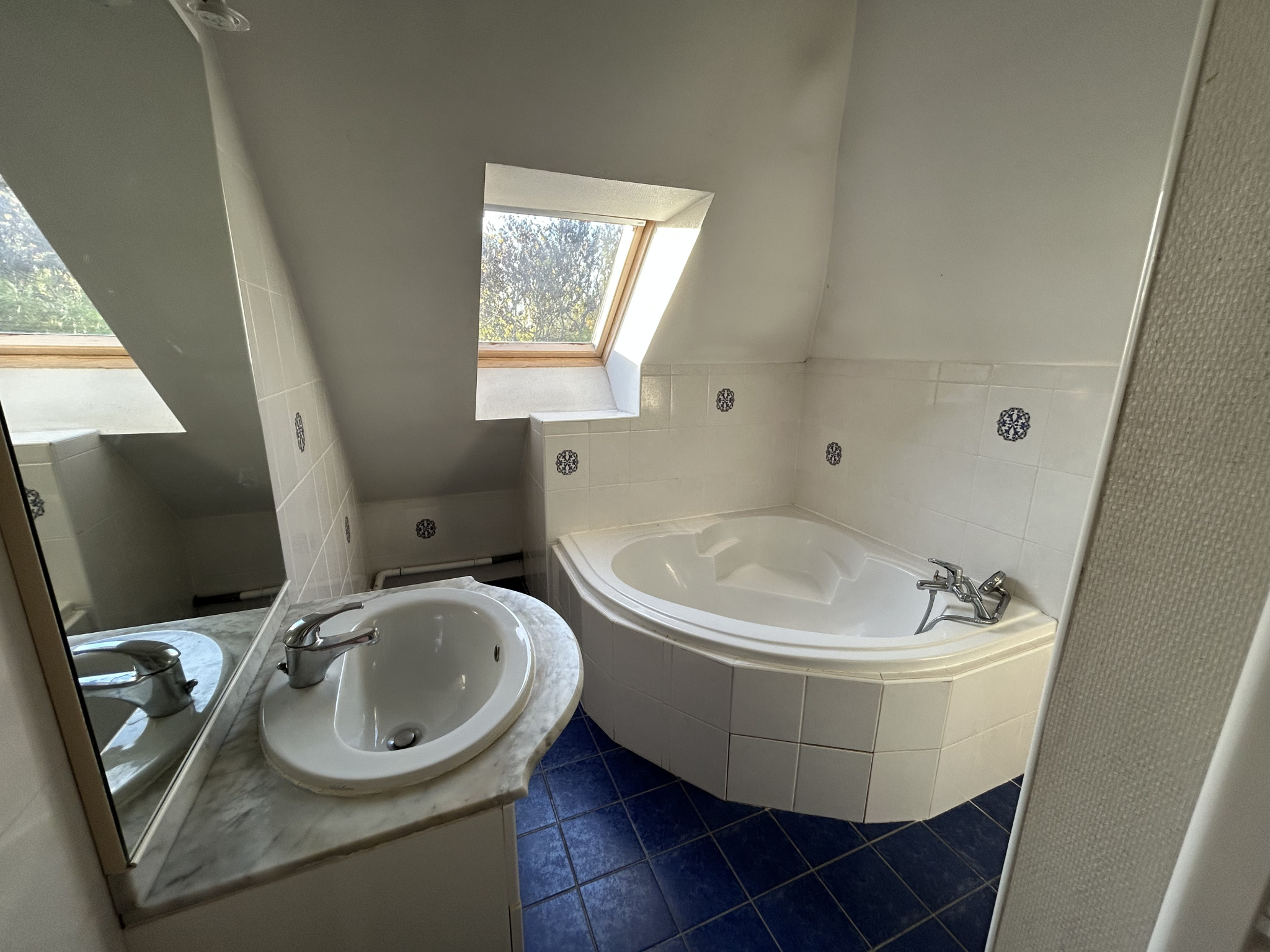 L'étage se compose d'un palier, de trois grandes chambres, d'une salle de bains avec douche et baignoire et d'un WC séparé.