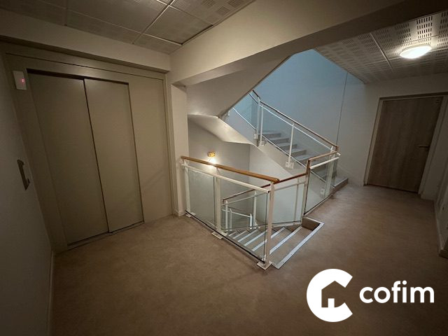 540 m² de bureaux au 1er étage : entrée avec banque d'accueil, 12 bureaux, 2 salles d'attentes, 1 salle de réunion, 1 salle de pause avec balcon - 4 WC dont PMR - Local archives - Vestiaires
