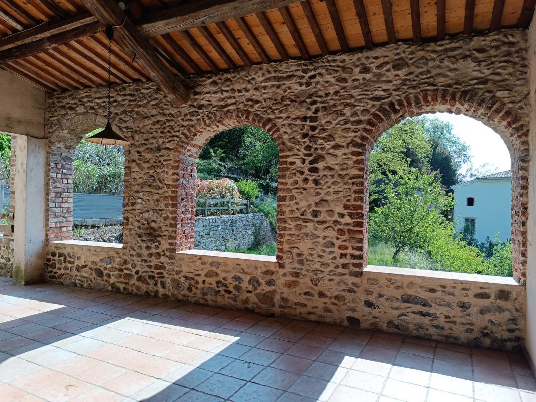 Les arcades en pierre et les ouvertures généreuses sont des atouts majeurs qui renforcent l'authenticité de la bâtisse.