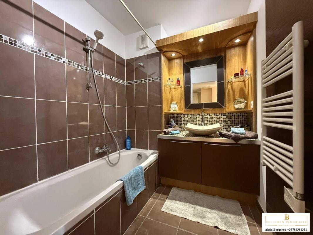 A VENDRE EXCLUSIVITE appartement traversant 3 pièces 67m² avec garage et place de parking à Villeneuve Loubet et à côté du parc de Vaugrenier. En exposition Sud avec ses 2 terrasses cet appartement bénéficie d'une situation au calme. Proche de toutes les commodités, commerces et à seulement 3.5Km des plages et 10km de l'aéroport Nice Côte d'Azur. Situé au dernier étage d'une copropriété, l'appartement a été aménagé sur mesure avec des matériaux nobles et du bois massif. Il se compose ainsi: entrée, séjour ouvrant sur la terrasse au Sud avec son apperçu MER, cuisine équipée et aménagée, salle de bains, 2 chambres dont une avec terrassse au Nord, WC indépendant. Nombreeux placards de rangement. - Dernier étage - Garage fermé privé - Place de parking privée - Cumulus neuf (début 2025) - Double vitrage - Climatisation reversible en gainable - Store anti UV avec toile aérée - Résidence fermée - Vidéophone - Pas de procédure en cours - Copropriété de 129 lots dont 53 appartements. Réf: 2358