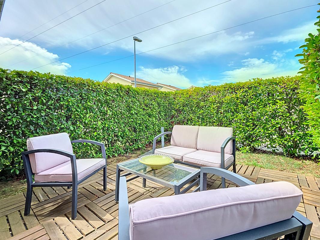 - Pièce de vie avec accès direct au jardin sur les deux terrasses dont une avec pergola bioclimatique et stores bannes