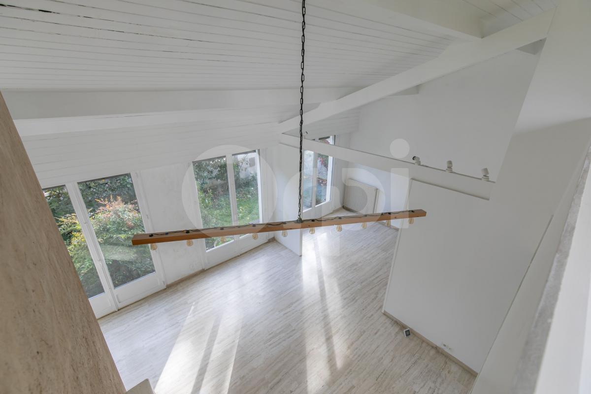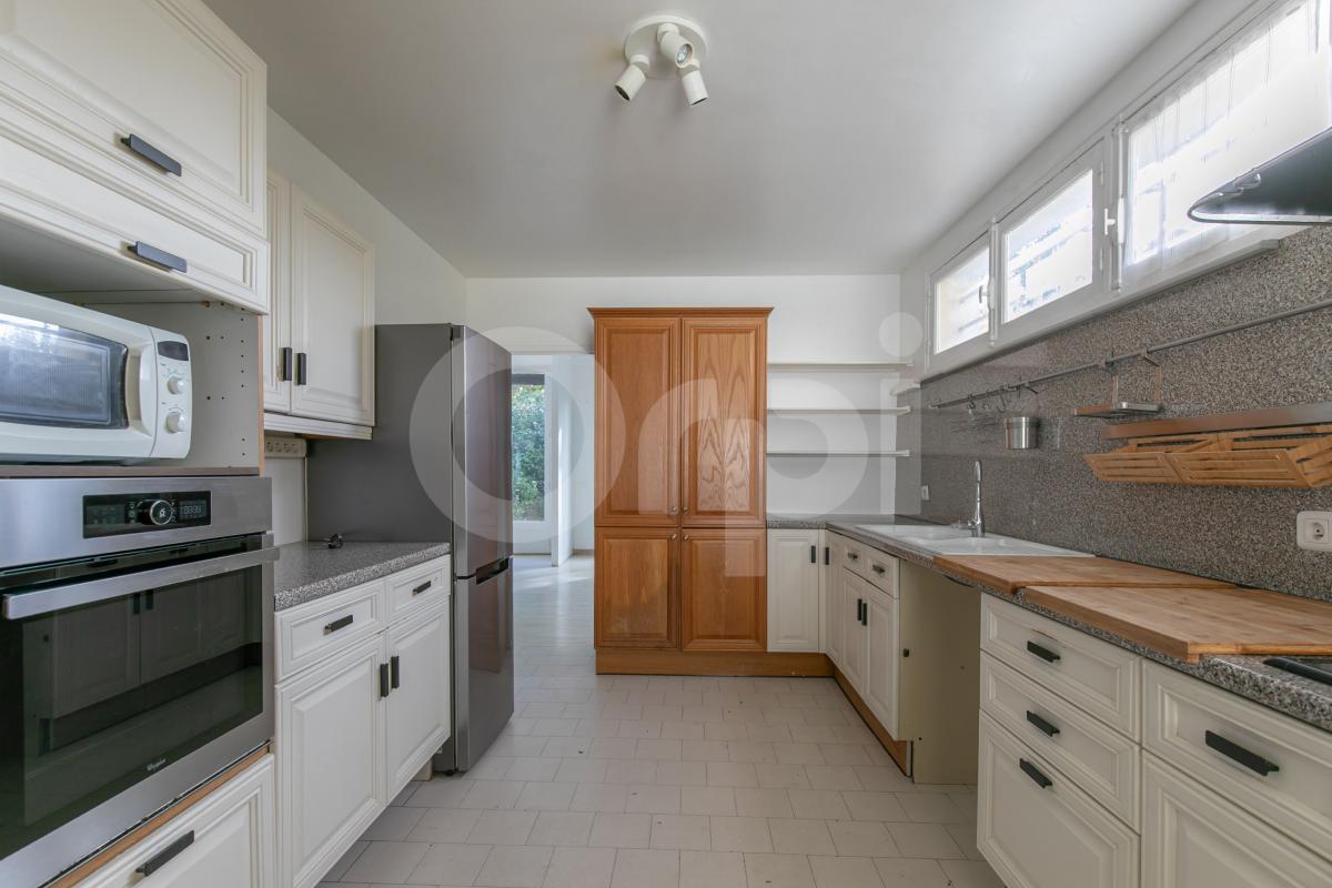 PETIT VAL, emplacement numéro 1, maison d'architecte des années 70 aux grands volumes et belles hauteurs sous plafond. Avec ses 176m² habitables pour 300m² au sol, elle se compose au rez-de-chaussée d'une entrée, un séjour et salle à manger cathédrale avec belle cheminée centrale et accès sur la terrasse et le jardin, une cuisine ouvrable sur la pièce à vivre, deux chambres, une salle d'eau et un WC. A l'étage un dégagement avec placard, trois chambres, une salle de bains et un espace mezzanine avec vue plongeante sur les pièces à vivre. Grand sous-sol total avec chaufferie, rangement, cave à vin, accès sur le jardin. Possibilité de stationner sur la parcelle. RER A et école du Petit Val à pied.