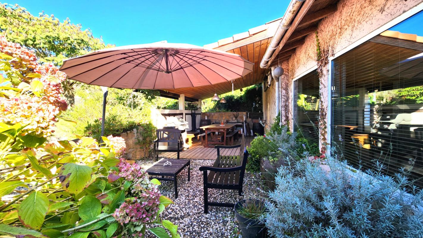 Le grand + une piscine intérieure chauffée, une terrasse couverte très agréable avec salon de jardin.