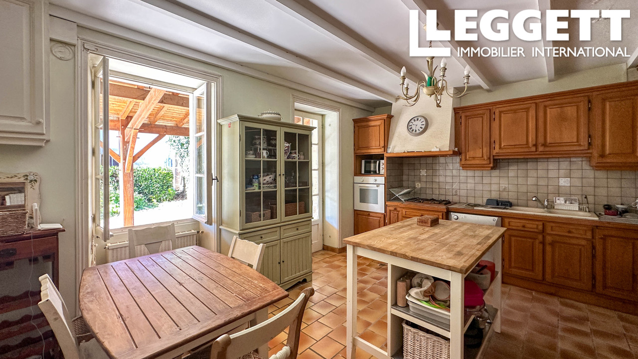 Cette maison de caractère exposée plein sud, mitoyenne d'un côté, offre des espaces de vie lumineux et conviviaux. Le séjour ouvert conserve son cheminée d'origine et comprend une cuisine entièrement équipée s'ouvrant sur une terrasse couverte, idéale pour les repas en plein air.