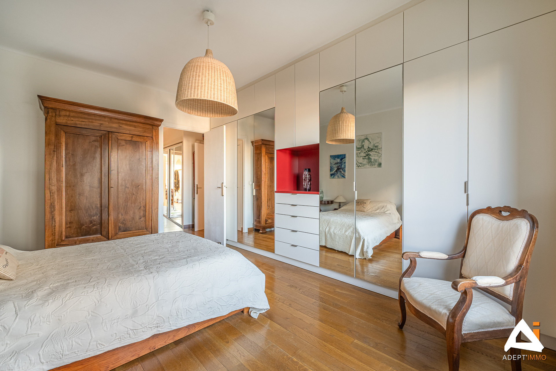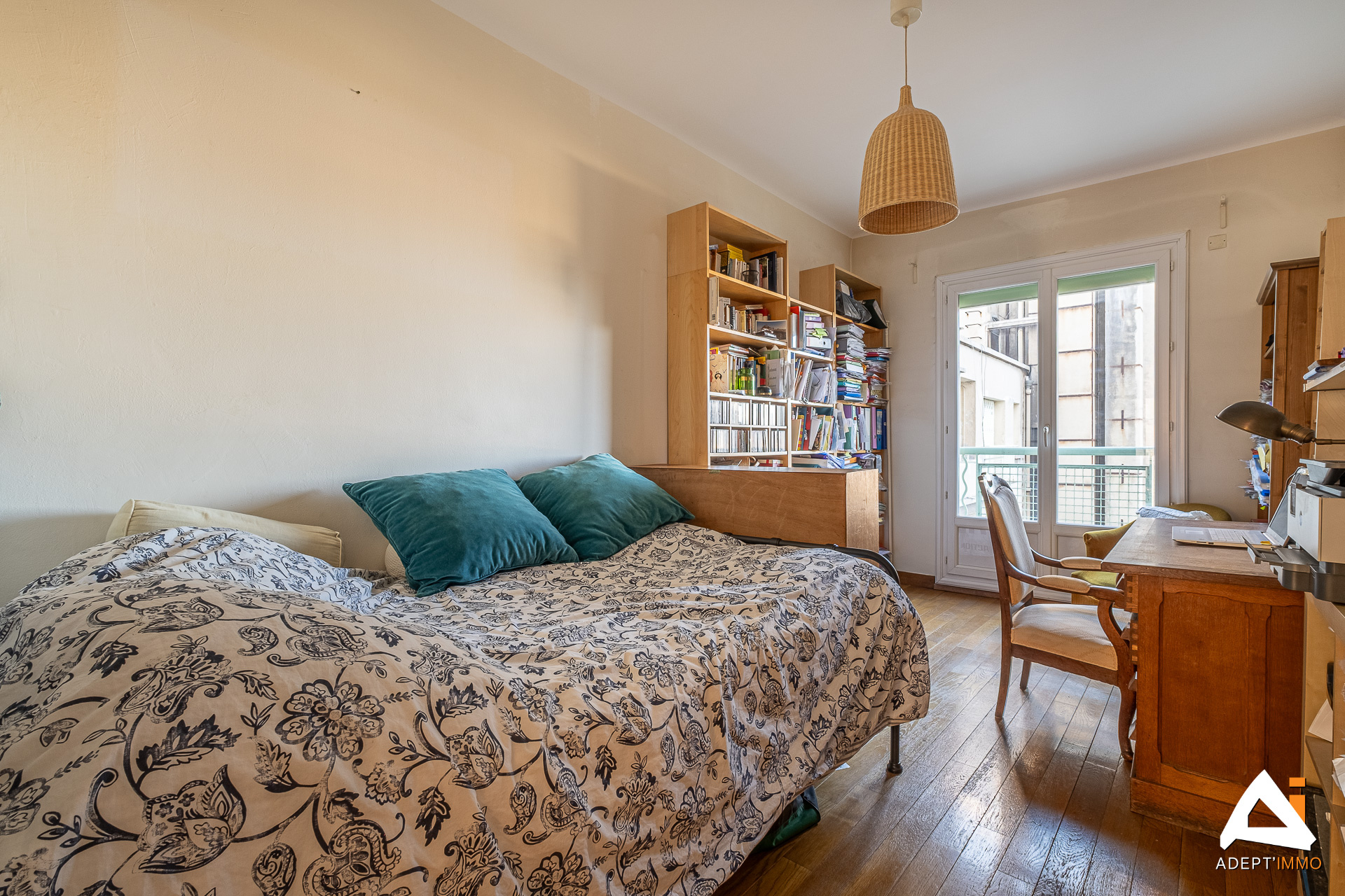 Vauban, sur le Bd Notre Dame, dans un bel immeuble typé art déco, en étage élevé ( 4eme avec asc.) pour profiter du SOLEIL et une vue sur Notre Dame et les collines, VASTE T4 TRAVERSANT de 112m2 avec un BALCON, pour disposer d'une petite table en extérieur! Cet appartement, en TRES BON ETAT, entièrement parqueté en chêne massif, offre un agencement idéal, pour une famille. Le grand salon de 35m2 , avec sa cheminée fonctionnelle, ouvre sur le BALCON ensoleillé l'après midi (ouest). La cuisine équipée, de 10m2, s'agrandit d'une loggia et permet de cuisiner aisément ou de se réunir autour d'une table quotidienne. Les 3 grandes chambres (14, 15 et 15m2) sont, pour deux d'entre elles, bien separées par une porte, qui délimite le coin nuit, conforté par une salle de bain, un wc indépendant et de beaux dressings, notamment un sur mesure qui optimise le rangement de toute la famille. La 3eme chambre, plus isolée des autres, peut permettre de séparer chambres enfants /parents. Elle est contigue au séjour et peut offrir un beau bureau ou un agrandissement de l'espace de vie, voir une cuisine ouverte sur le séjour. L'appartement est équipé de nombreuses PRESTATIONS: climatisation, double vitrage, volets electriques, store, marbre italien dans la cuisine et sdb... et dispose d'une cave. Un PARKING situé en face peut être loué. La copropriété, très bien entretenue, est à proximité immédiate des commerces, écoles plébiscitées ( lycee Notre Dame de France, ecole primaire notre dame...) et à 10mn à pieds du METRO (650m). Le quartier de Vauban est aussi et particulièrement apprécié pour son ambiance, avec des cafés et restaurants, et son accessibilité immédiate du vieux port et axes autoroutiers