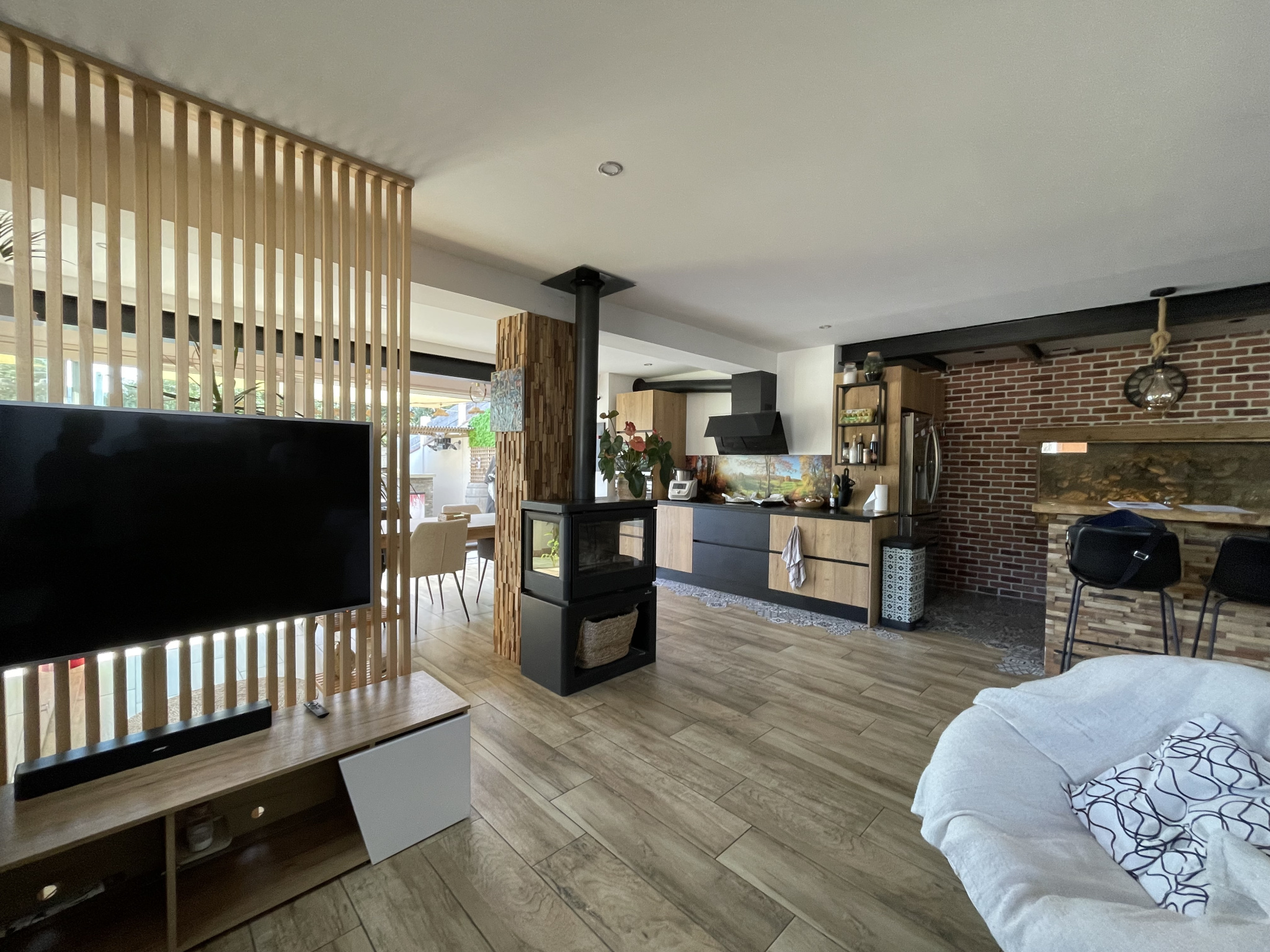 À l'extérieur, le jardin arboré, sans vis-à-vis, invite à la détente autour d'une belle piscine et d'une cuisine d'été conviviale.