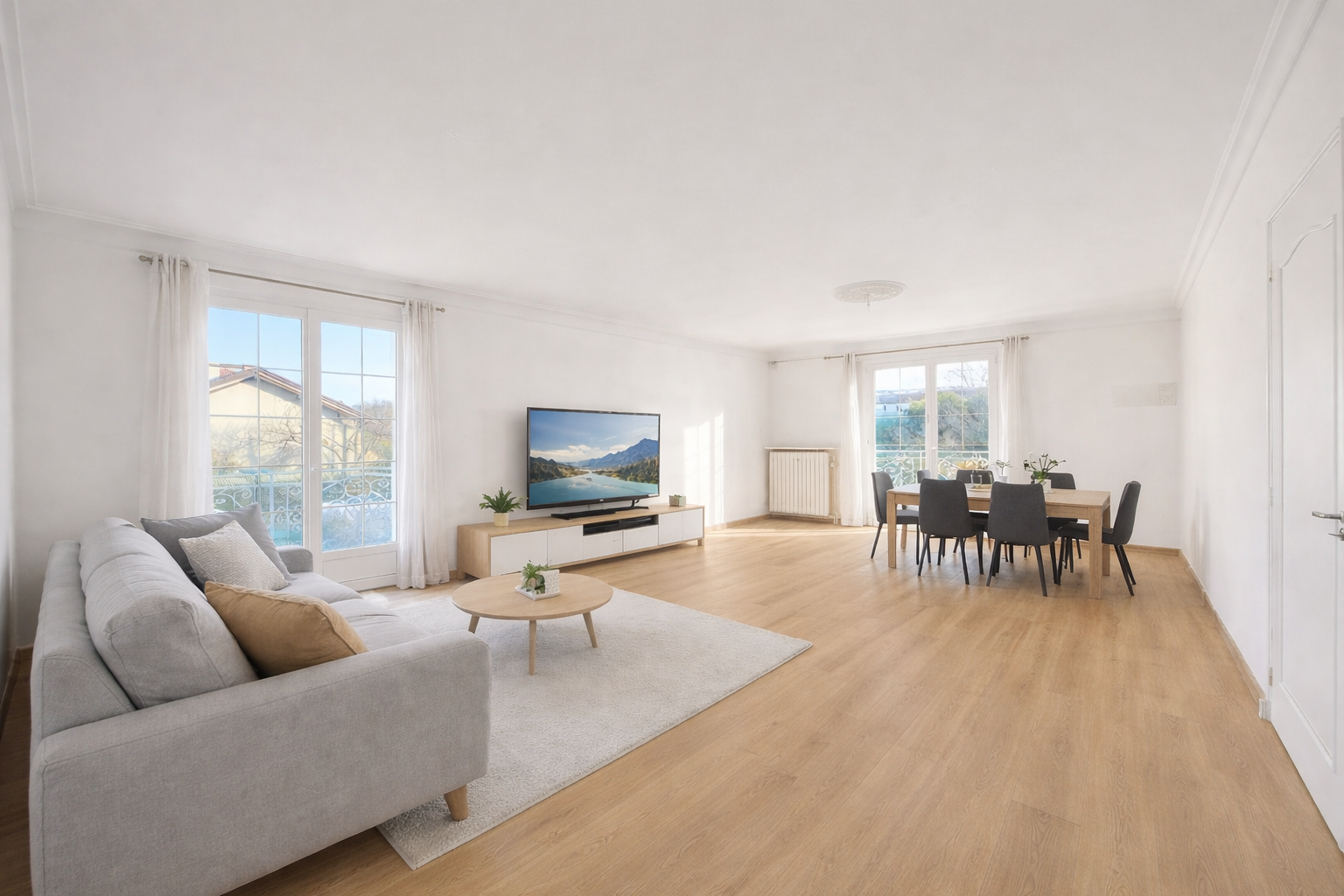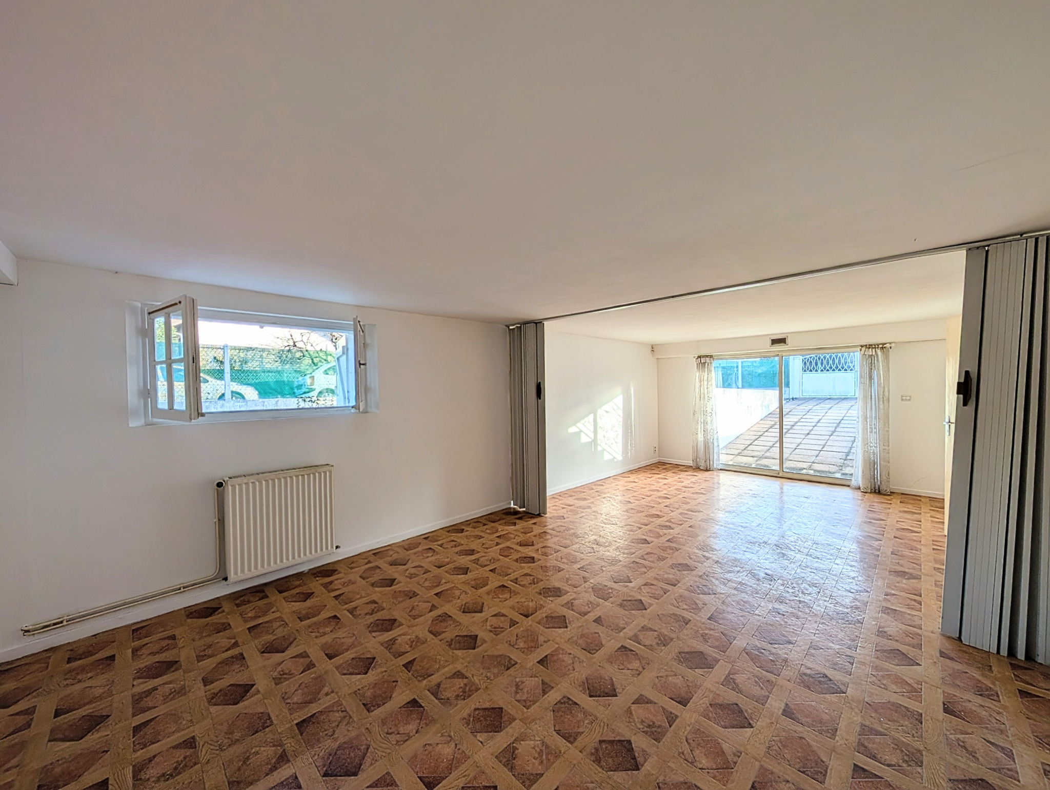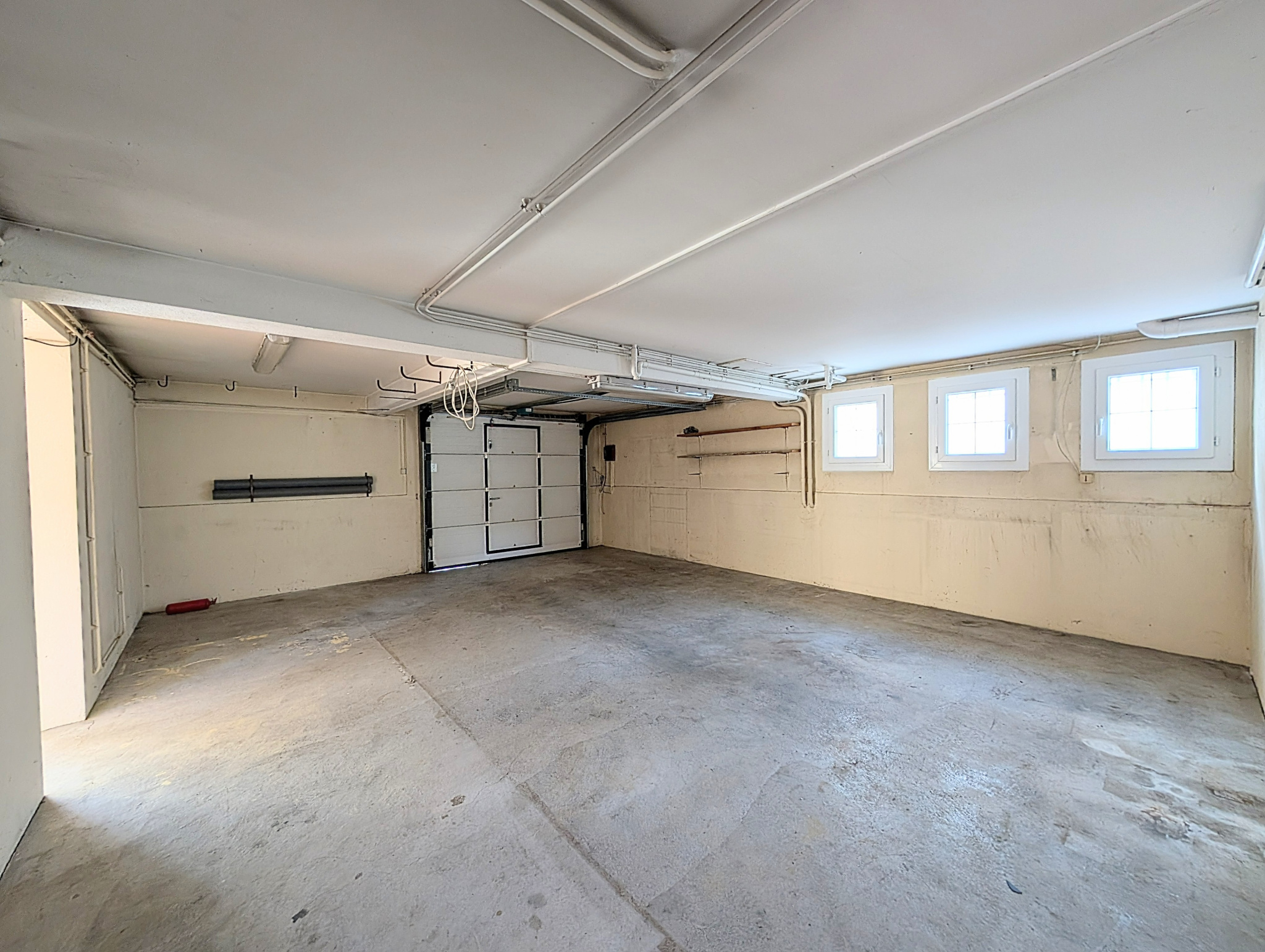 L'entrée distribue un grand salon lumineux ainsi qu'une cuisine attenante. Un dégagement dessert une salle d'eau avec douche italienne, un toilette ainsi que deux grandes chambres avec placards. Un escalier permet de descendre au rez-de-jardin où l'on retoruve un grand espace cellier/buanderie, une chambre supplémentaire ainsi qu'un espace salon complémentaire d'environ 32m2 pouvant faire office suivant les besoins de chacun, d'espace de travail, de salle de jeux, de quatrième chambre...