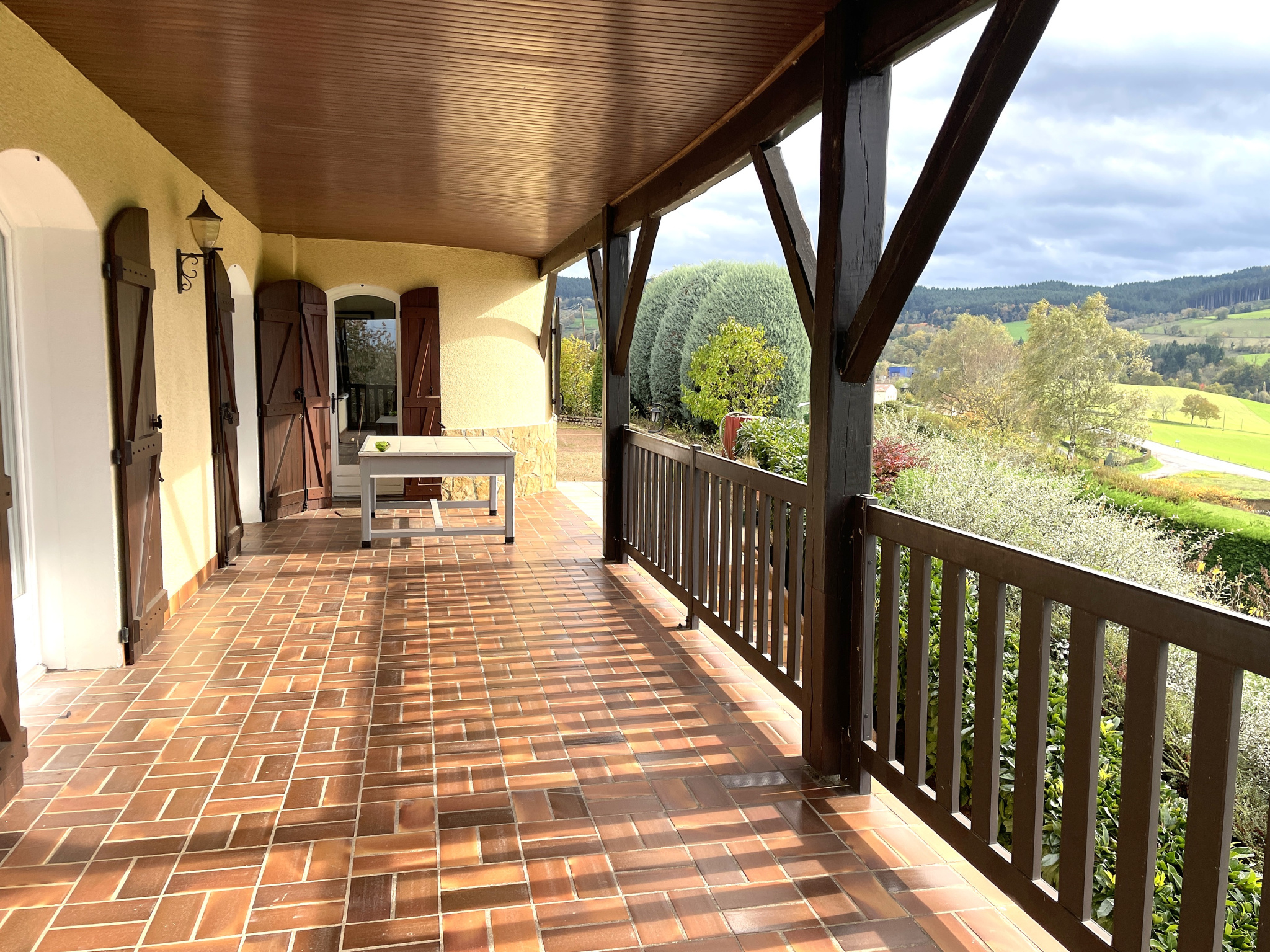 L'habitation se compose d'un hall d'entrée, un grand salon/salle à manger de 40 m2 avec accès à la terrasse abritée de 35 m2 avec vue plein SUD, une cuisine équipée, une buanderie, une salle d'eau, trois chambres et un WC. L'ensemble est chauffé avec une chaudière fioul de dernière génération, relié au tout-à-égout, fibre optique, menuiserie bois double vitrage, terrain clos arboré de 3020m2 avec différents espaces extérieurs pour profiter de la vie de campagne.