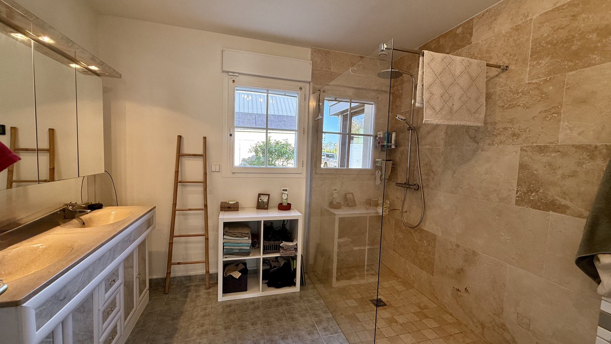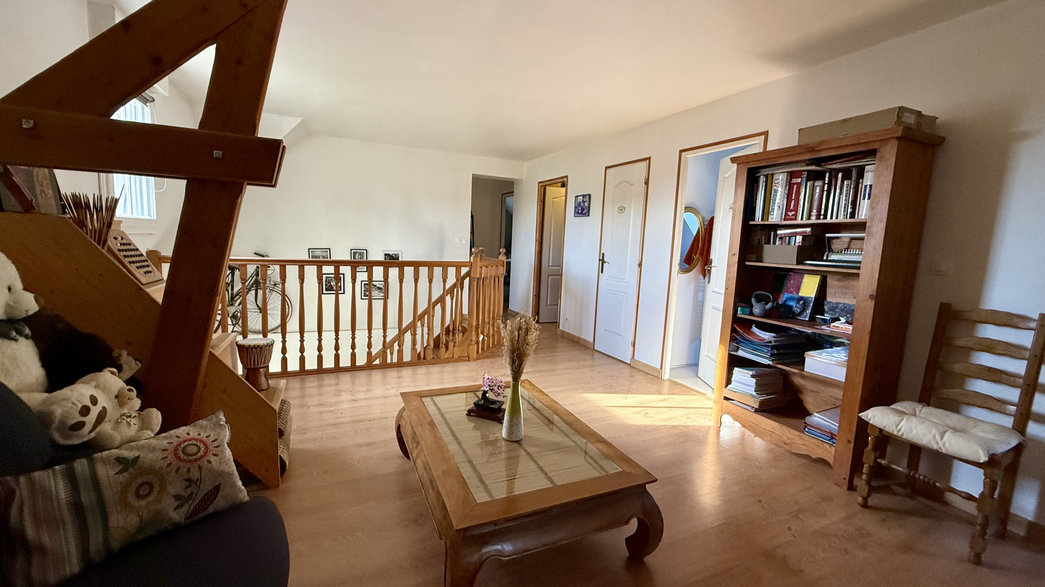 Nous vous proposons à la vente cette construction traditionnelle aux prestations et matériaux de qualité implantée dans un environnement calme et très agréable. Elle se compose d'une entrée donnant sur salon salle à manger avec poêle à granules et accès à une très belle véranda chauffée, cuisine ouverte aménagée et équipée, arrière cuisine, buanderie, 5 chambres dont une au rez de chaussée, 2 salles d'eau.