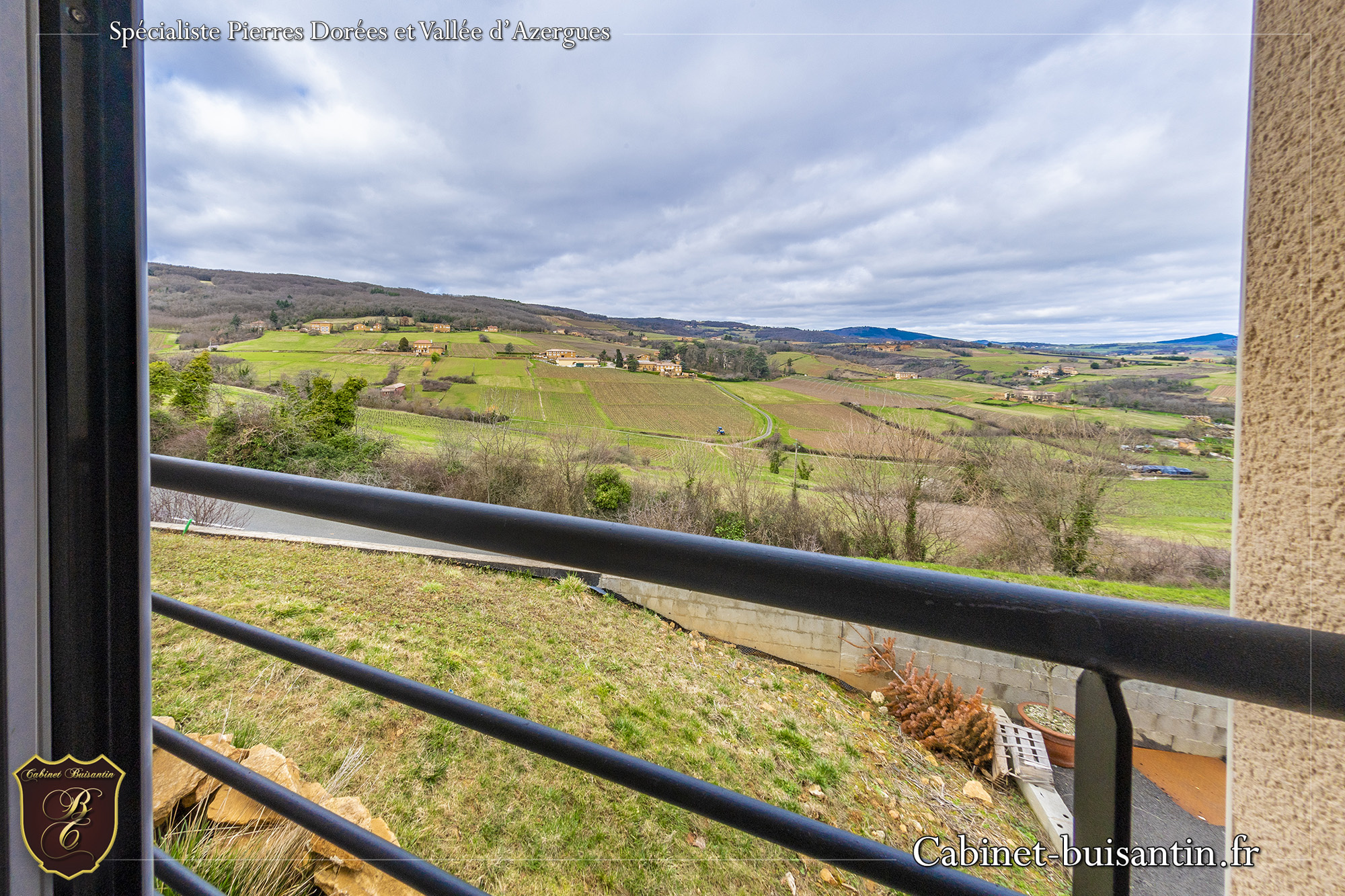 EXCLUSIVITÉ - THEIZÉ - Située sur les hauteurs avec vue imprenable, à seulement 15 minutes de Villefranche. Villa construite en 2021 sur sous-sol complet. Elle comprend : une grande pièce à vivre avec cuisine équipée, suite parentale avec salle d'eau privative, 2 chambres, salle de bains et wc. Au sous-sol, vous trouverez un grand garage de 72 m2 (possibilité de créer un bureau ou chambre d'amis) et une buanderie. Le tout sur un terrain de 602 m2 avec vue imprenable sur les collines environnantes. Lumineuse, cette maison offre de belles prestations, très bien entretenue, elle bénéficie de l'assurance dommage-ouvrage.