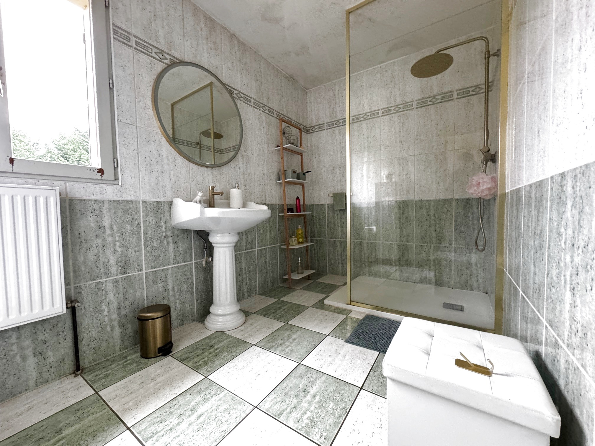 Maison Individuelle de 141 m2 habitable élevée sur sous-sol total et 5195 m2 de terrain, composé au rez-de-chaussé d'une entrée, séjour - salle à manger, véranda cuisine équipée, chambre, salle d'eau, wc. Au premier étage un palier désservant 3 chambres dont 2 en enfilades. Au sous sol: garage 2 voitures et 2 pièces. chauffage par pompe à chaleur air /eau. Abri de jardin. nombreuses places de parking dans l'allée.