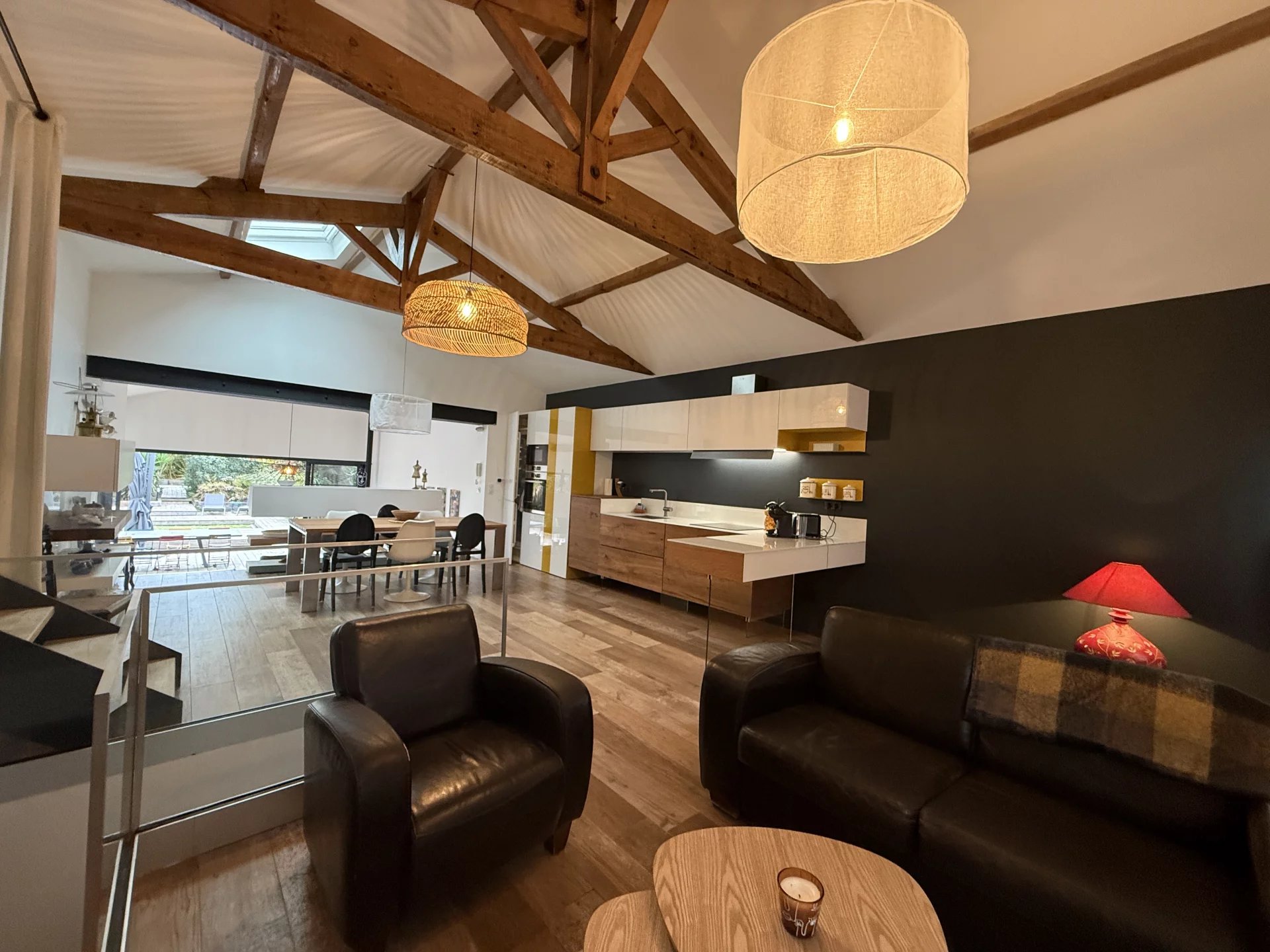 La pièce de vie de plus de 70 m² permet à l'extérieur de s'inviter à l'intérieur.