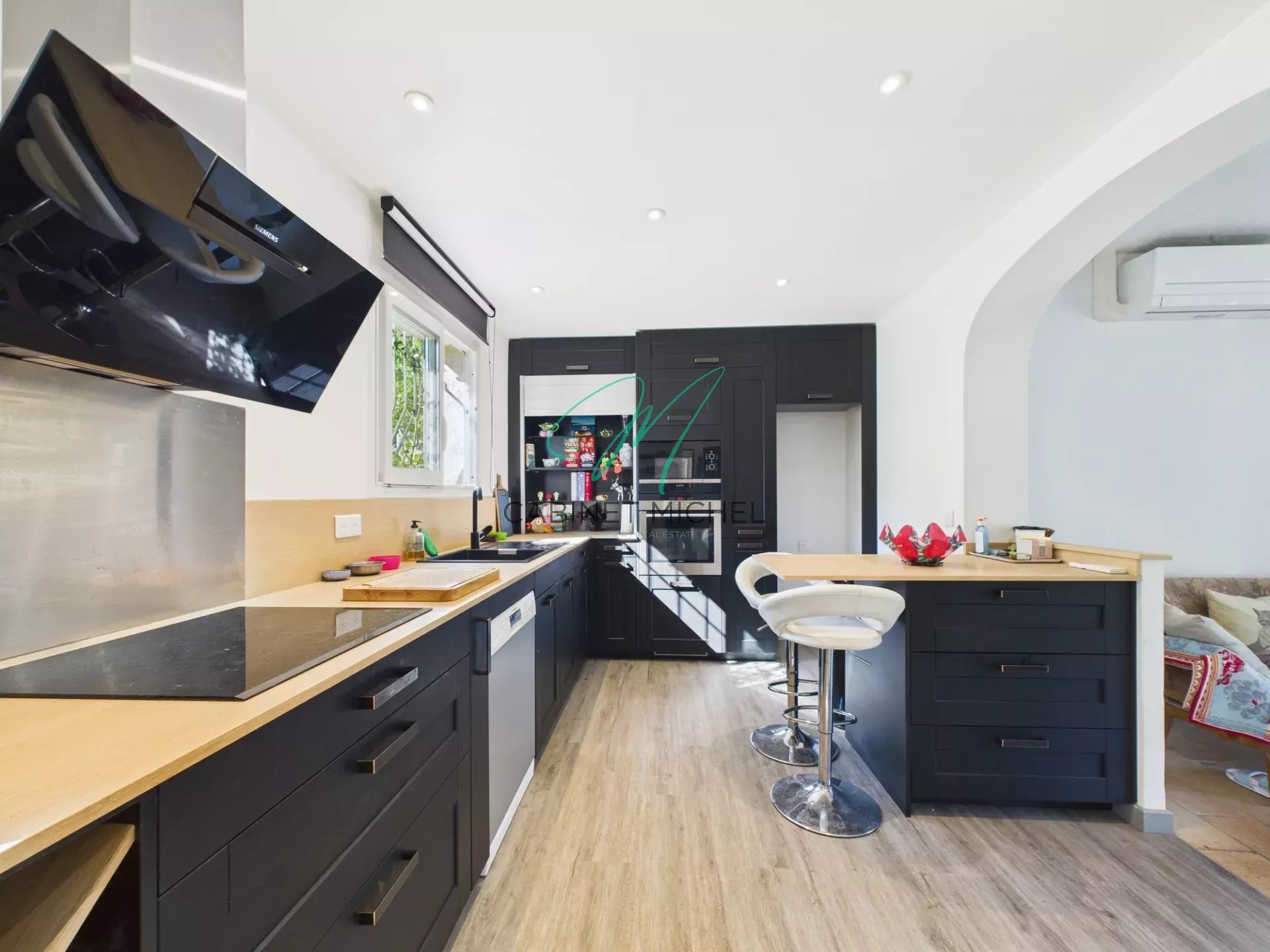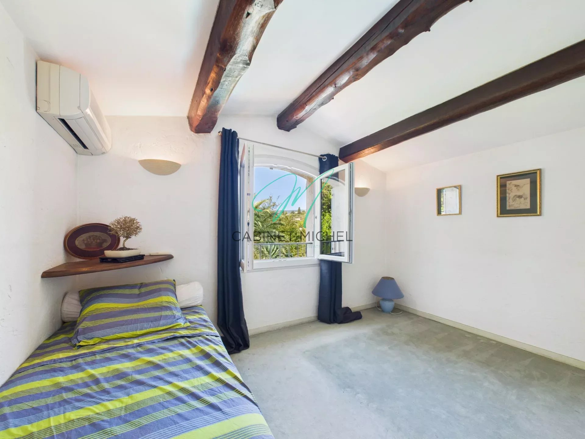 À l’extérieur, profitez d’une piscine, d’une grande terrasse ensoleillée ainsi que d’un double garage avec mezzanine, portail motorisé et vaste espace de stationnement. La propriété est entièrement climatisée pour un confort toute l’année.