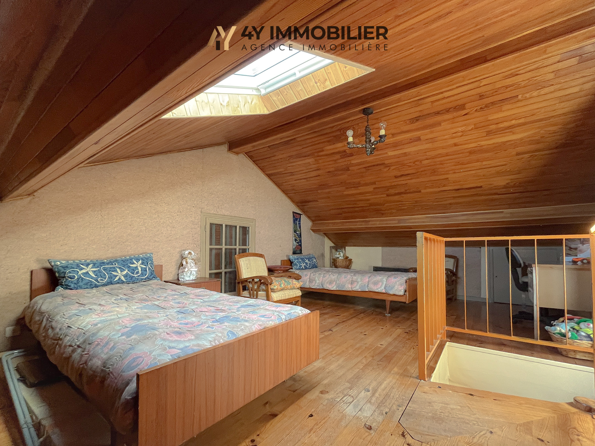Au dernier étage, sous pente, une pièce aménagée fait actuellement office de chambre ou de bureau. Travaux à prévoir, idéal pour un projet de rénovation.