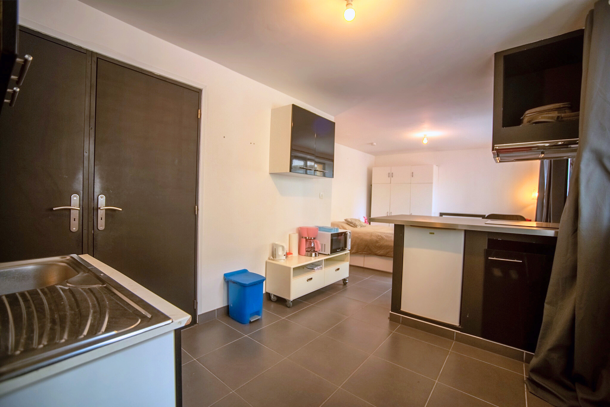Situé au rez-de-chaussée, ce charmant studio se compose d'une entrée ouvrant sur une cuisine entièrement équipée, d'une pièce principale lumineuse ainsi que d'une salle d'eau, avec un WC séparé.