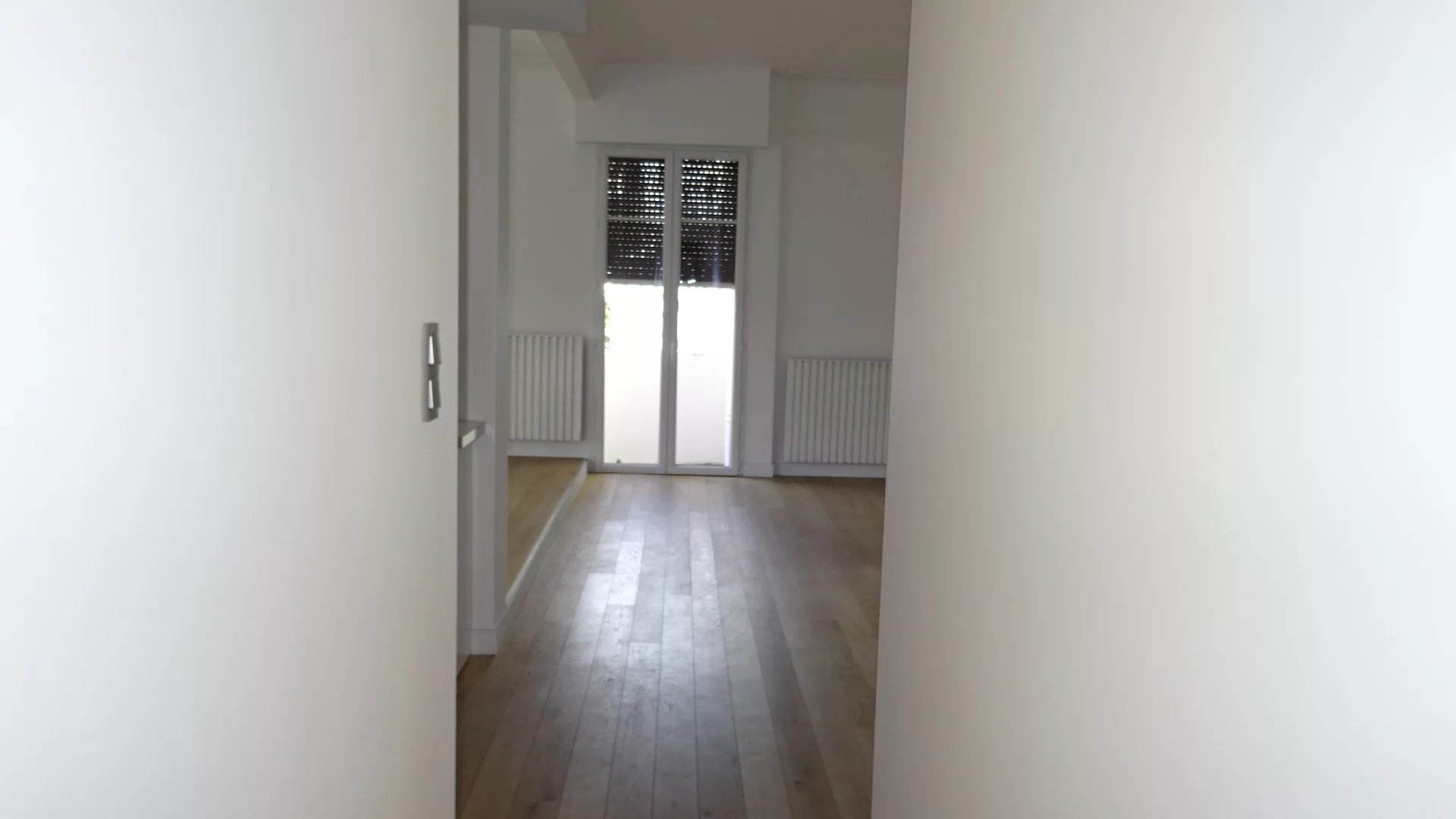 Appartement composé d'une entrée, 2 chambres, un séjour avec une cuisine ouverte, une salle de bains et toilettes séparés.