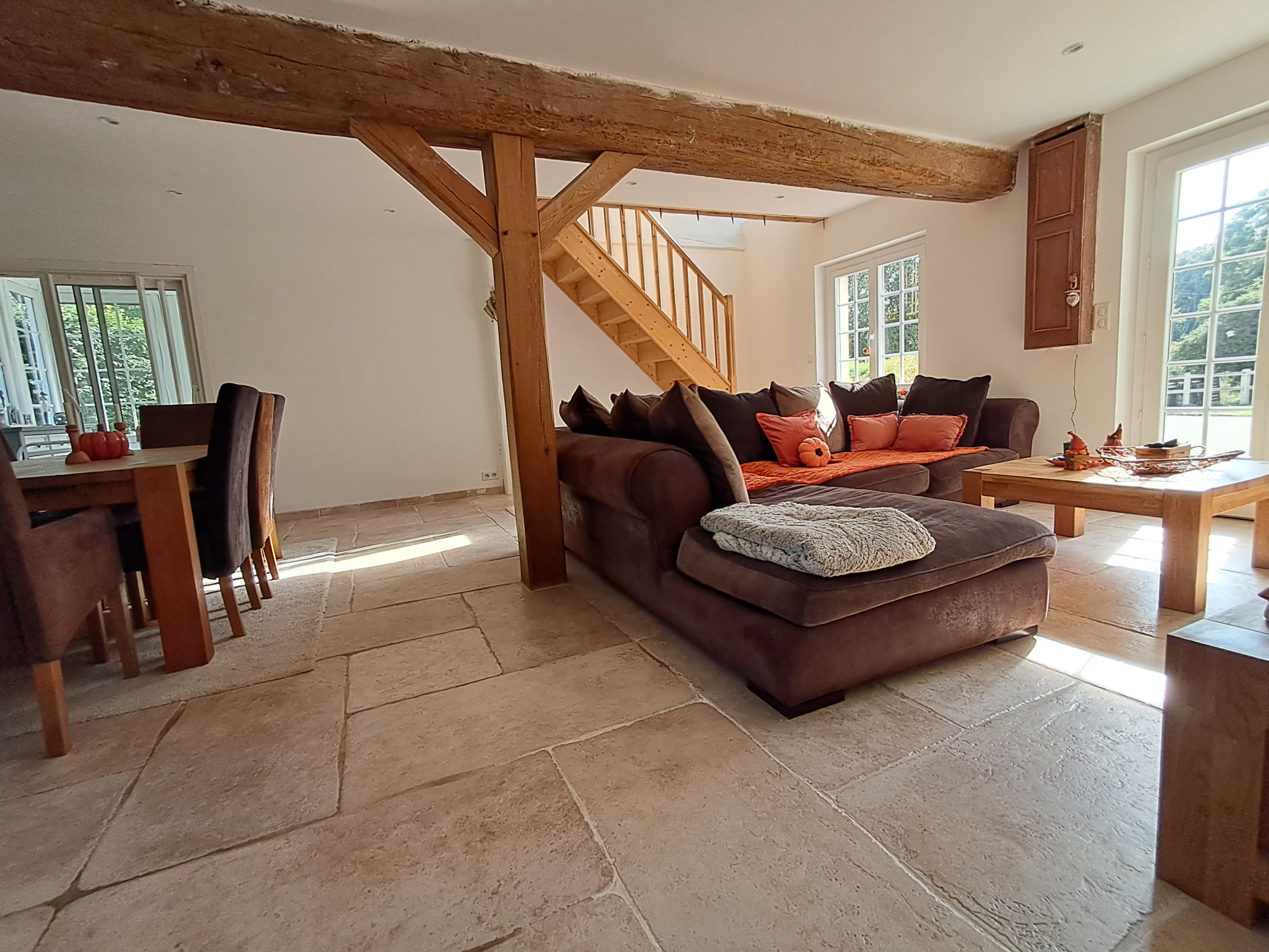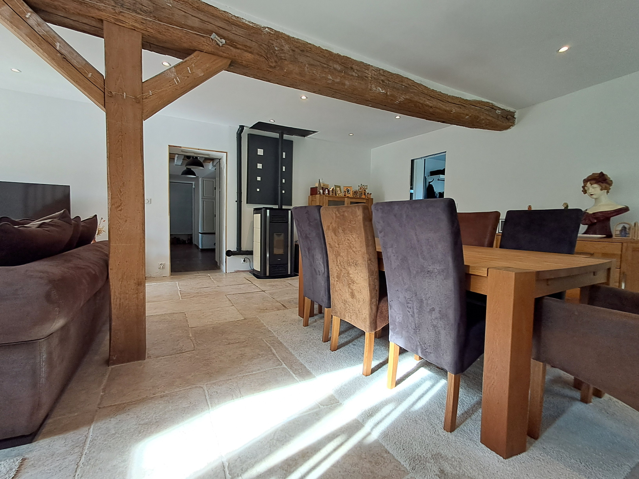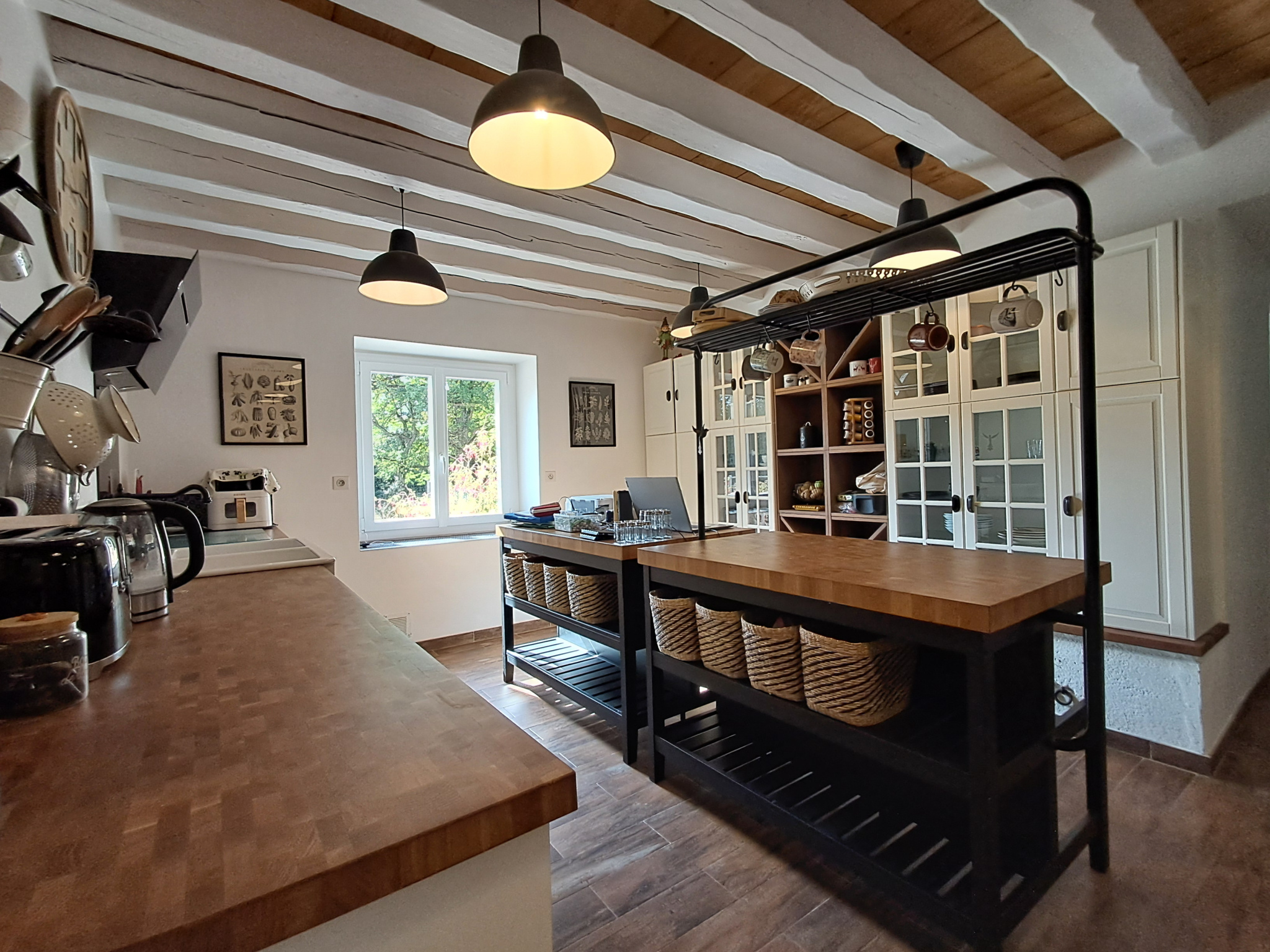 L'habitation a été restaurée et comporte grande pièce principale de vie avec poêle à granulés, grande cuisine aménagée et équipée, buanderie, wc, hall d'entrée, belle véranda, une salle de bain, une salle d'eau, wc, deux chambres, un grand dressing qui en cas de besoin peut devenir une chambre complémentaire, un bureau.