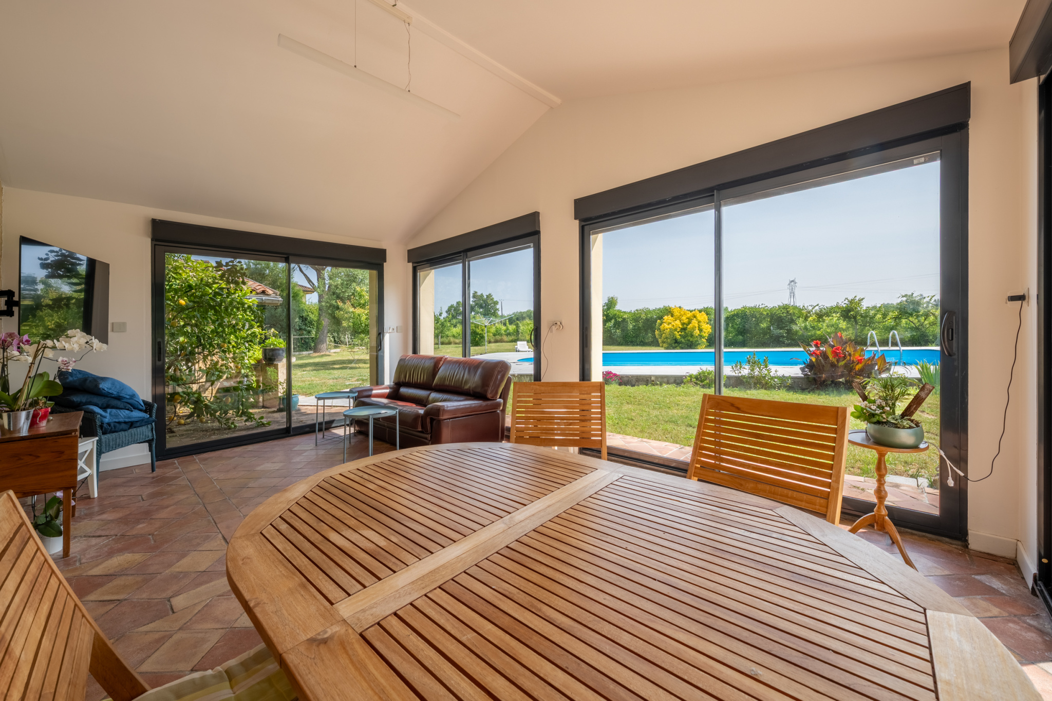 A l'extérieur, le charme opère tout autant. le jardin de 3 374 m2 env, soigneusement arboré et fleuri, offre un cadre paisible et intime. La piscine de 10x5 récemment rénovée s'accompagne d'une terrasse avec vue dégagée sur la nature, sans aucun vis-à-vis.