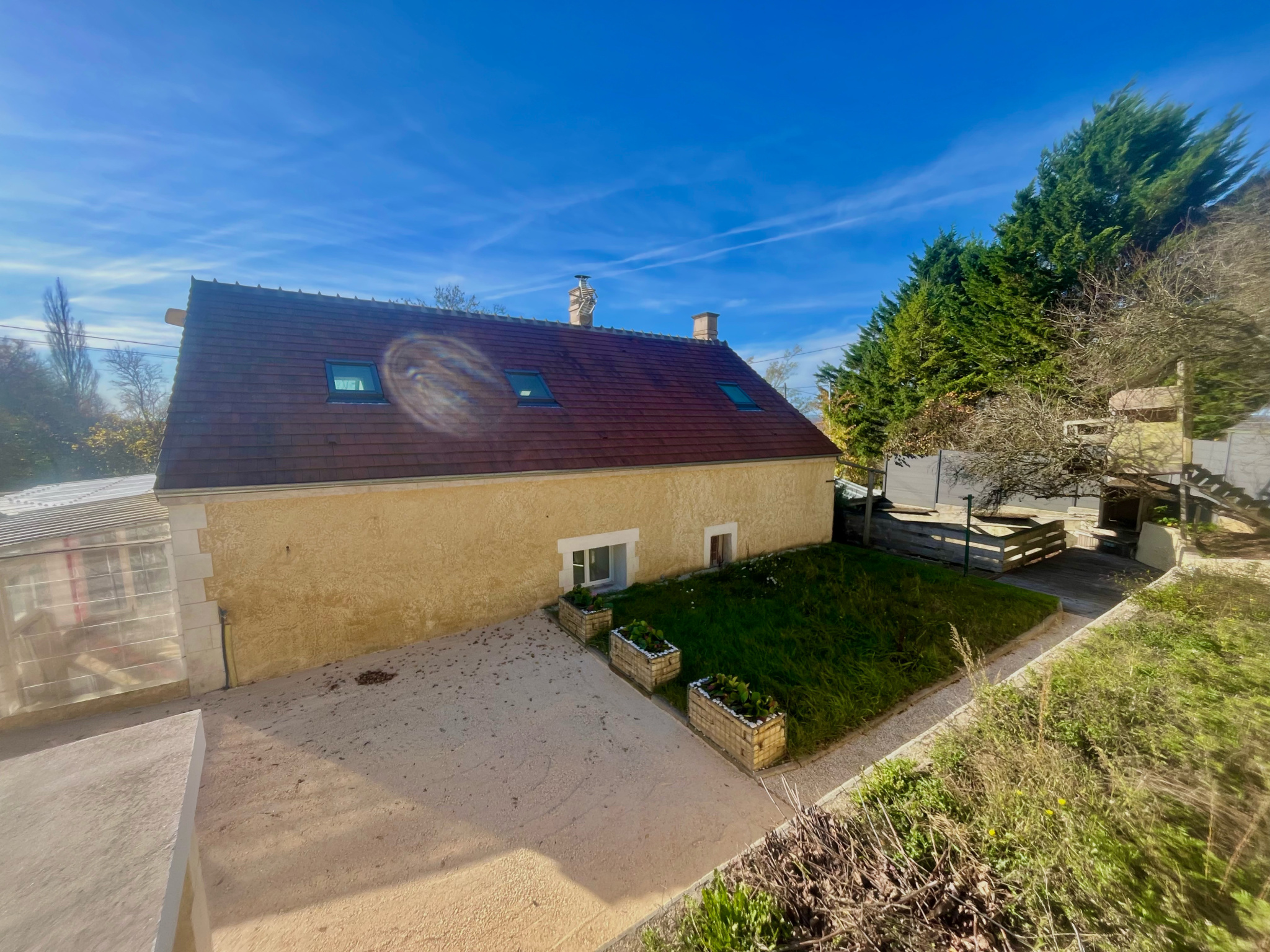 Située sur les hauteurs de Taingy, au coeur du pays de Forterre, cette superbe maison de caractère séduit par son authenticité préservée et son confort moderne. À seulement 10 minutes de Courson-les-Carrières et 25 minutes d'Auxerre, vous profiterez d'un cadre paisible et verdoyant, tout en restant proche des commodités, écoles et axes principaux. Une rénovation d'exception signée Compagnon du Devoir Entièrement repensée et rénovée par un artisan compagnon du devoir, cette propriété reflète un savoir-faire artisanal rare et une attention portée à chaque détail. La toiture, refaite il y a moins de 5 ans, ainsi que les finitions sur mesure, témoignent du soin apporté à cette rénovation complète. Dès l'entrée, une vaste pièce traversante distribue d'un côté les espaces de vie et de l'autre l'accès au jardin arrière, exposé plein sud et baigné de lumière tout au long de la journée. Un intérieur chaleureux, lumineux et fonctionnel Le rez-de-chaussée offre des volumes harmonieux et des espaces pensés pour la convivialité : o Cuisine séparée confortable et fonctionnelle, o Salle de bain pratique, idéale pour recevoir, o Séjour lumineux avec deux espaces distincts, o Véranda prolongeant la pièce de vie, parfaite pour un coin lecture ou détente, o Buanderie avant l'escalier pour plus de praticité. Chaque espace révèle le charme des matériaux anciens et des formes atypiques, subtilement mariés à des touches contemporaines. Étage intime et baigné de lumière À l'étage : o Deux grandes chambres en suite, confortables et claires, o Un palier spacieux pouvant accueillir un bureau ou coin lecture. Un espace pensé pour le bien-être familial ou pour une résidence secondaire pleine de caractère. Extérieurs aménagés et esprit détente Les espaces extérieurs ont été imaginés comme un véritable prolongement de la maison : o Grand garage haut de plafond (pouvant accueillir un van), o Second garage ouvert, o Terrasses aménagées sur les toits des garages avec vue dégagée sur les collines, o Piscine pour les beaux jours, o Poulailler, o Grand bassin d'eau (ancien bassin à carpes Koi), o Jardin paysager facile d'entretien. Un dernier petit bâtiment abrite la fosse septique (aux normes) et offre la possibilité d'aménager un atelier, un abri de jardin ou un espace de recharge pour véhicule léger. Atouts techniques o Toiture récente (-5 ans) o Double vitrage o Fosse septique conforme o Exposition plein sud o Matériaux nobles et finitions artisanales o Espaces optimisés et lumineux Localisation o Taingy (Hauts de Forterre Yonne) o 10 min de Courson-les-Carrières o 25 min d'Auxerre o 1h45 de Paris (via A6) Une maison pleine de charme et de personnalité, rénovée avec passion et exigence, parfaite pour les amateurs d'authenticité et de tranquillité. Un lieu rare, où chaque détail a du sens et où il fait bon vivre toute l'année. CLASSE ENERGIE : D 239 kWh/m2/an. CLASSE CLIMAT : B 7 kgCO2/m2/an.. Diagnostic de performance énergétique réalisé le 23/05/2024. Cet ensemble vous est proposé au prix de 139 000 EUR honoraires charge vendeur par votre conseiller local Occitanie, Vivien Gueneau. Contactez-le au 06 16 38 45 11 ou par mail à vivien.gueneau@cotefrance.immo Côté France immobilier, réseau immobilier Franco-Belge / achat-vente-estimation- http://www.cotefranceimmo.fr 'Les informations sur les risques auxquels ce bien est exposé sont disponibles sur le site Géorisques : http://www.georisques.gouv.fr ' La présente annonce immobilière a été rédigée sous la responsabilité éditoriale de (EI) Vivien Gueneau, Agent commercial indépendant en immobilier de la SARL Côté France (sans détention de fonds), l'agent commercial immatriculé au RSAC d'Auxerre sous le numéro 915 145 585, titulaire de la carte de démarchage immobilier pour le compte de la société SARL Côté France.