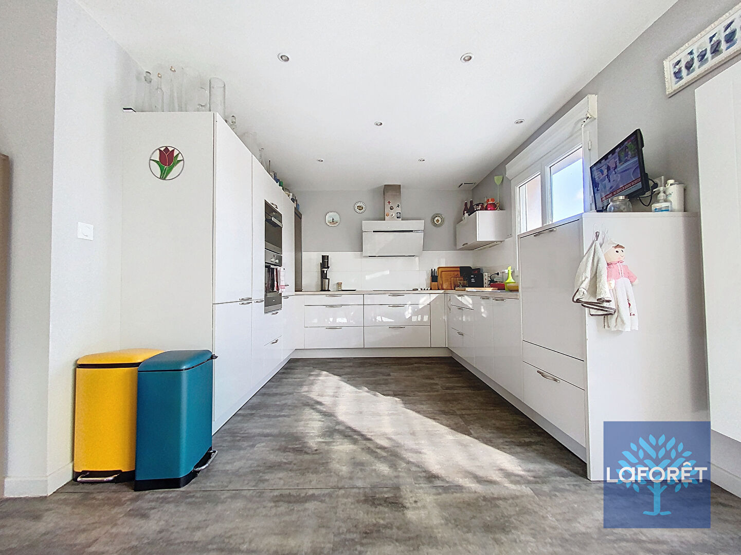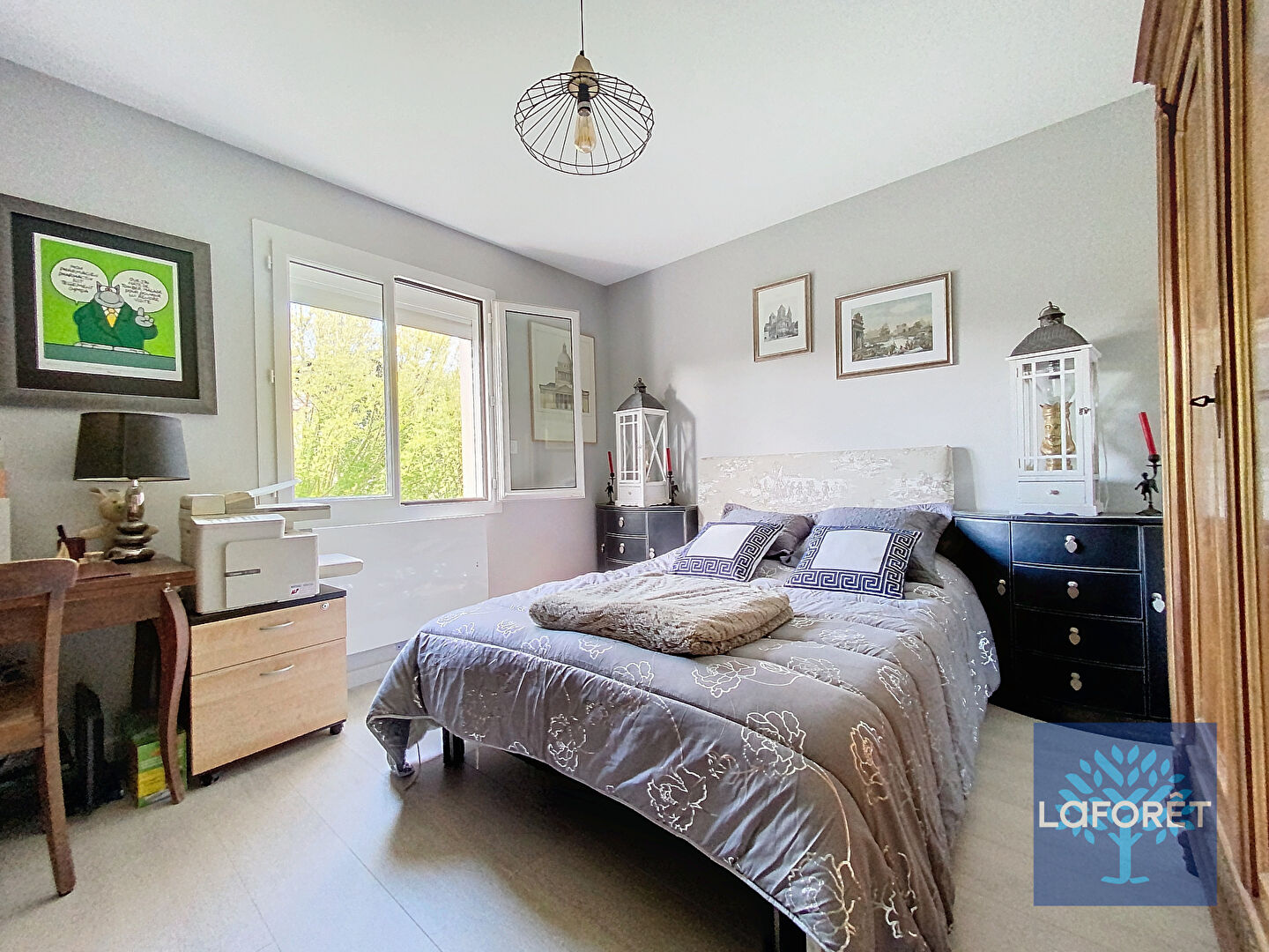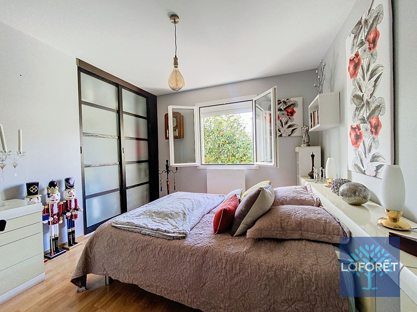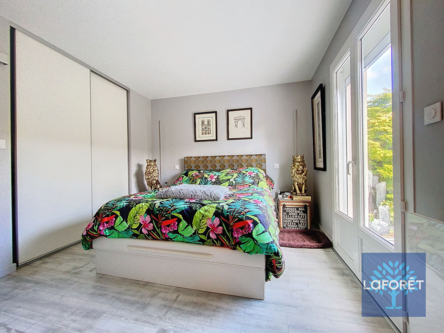 A l'extérieur, un garage servant de rangements, plusieurs places de stationnement, une terrasse avec pergola bioclimatique donnant sur un magnifique jardin arboré exposé sud avec une vue dégagée.