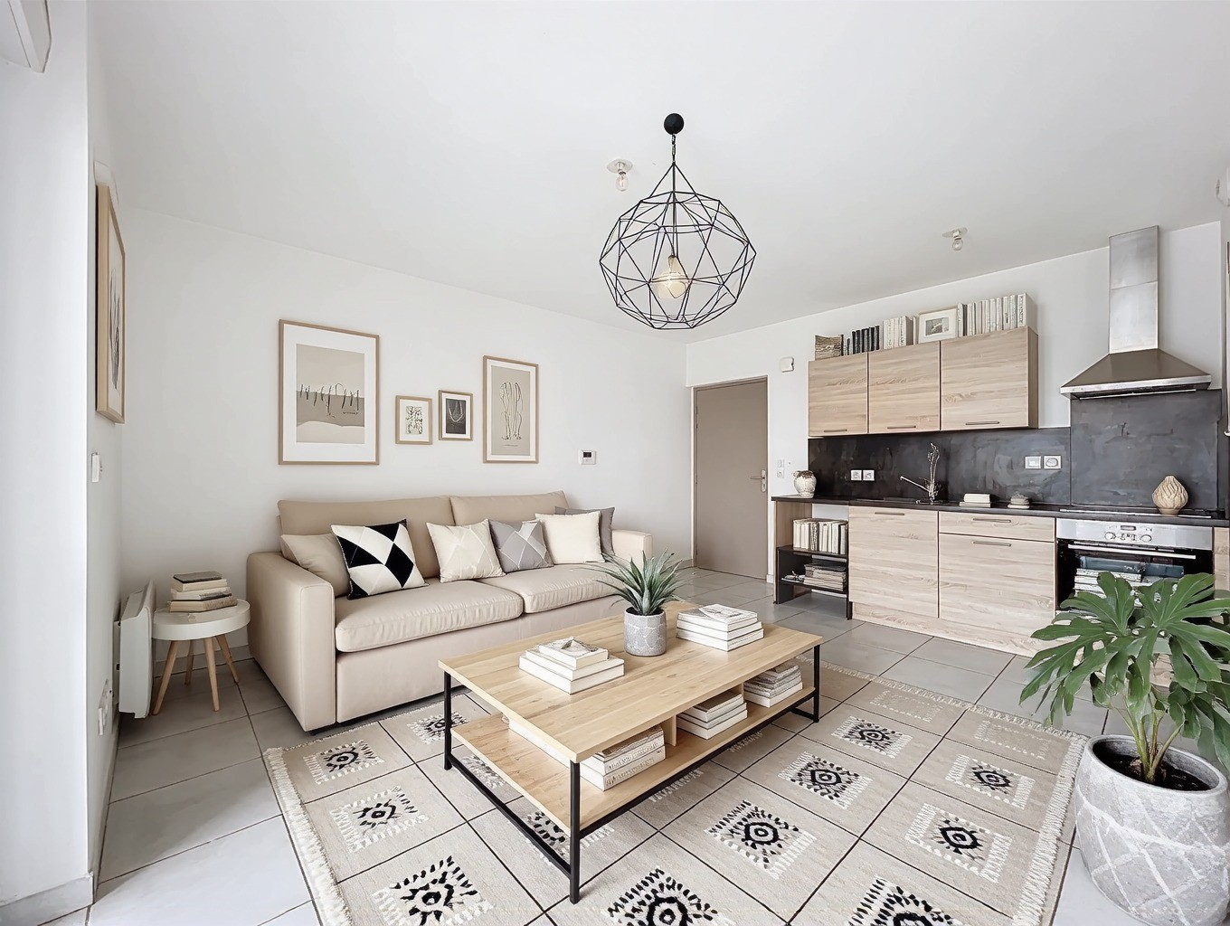 L'espace de vie, lumineux et soigneusement agencé, s'ouvre sur une cuisine contemporaine aménagée et équipée, prolongée par terrasse 8.5 m², idéale pour profiter des beaux jours.
