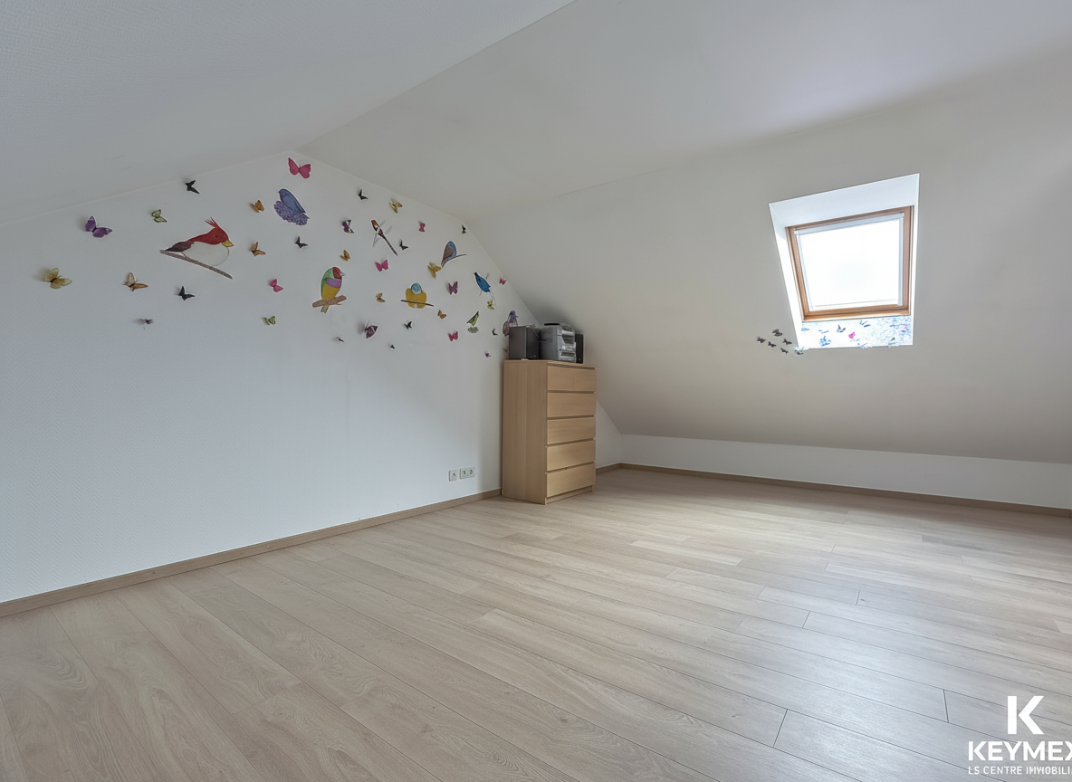 À l'étage, deux grandes chambres et une salle d'eau offrent des volumes parfaits pour les enfants.