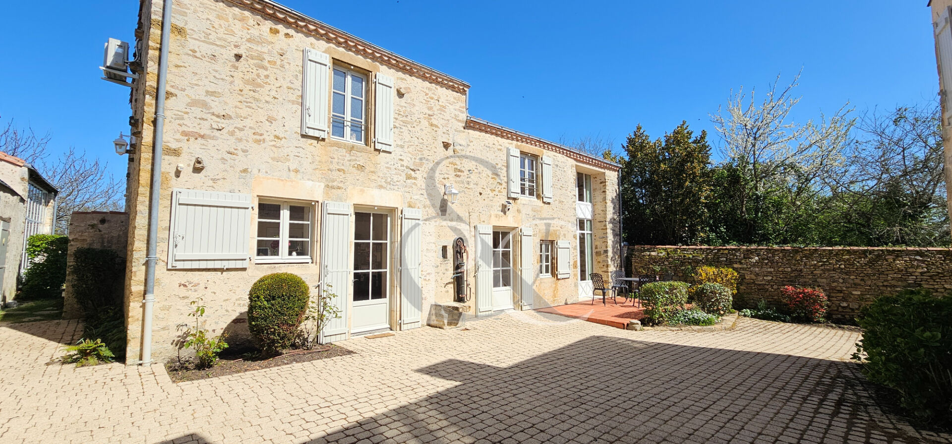L'accent est mis sur des éléments de caractère, comme les pierres apparentes et les tomettes d'époque, qui apportent une véritable chaleur à l'ensemble. Le salon avec cheminée, l'atelier lumineux, et le jardin paysagé avec piscine créent un cadre propice à la détente et à la créativité. Les dépendances ajoutent encore à l'attrait de ce bien rare, offrant une expérience de vie à la fois paisible et fonctionnelle.