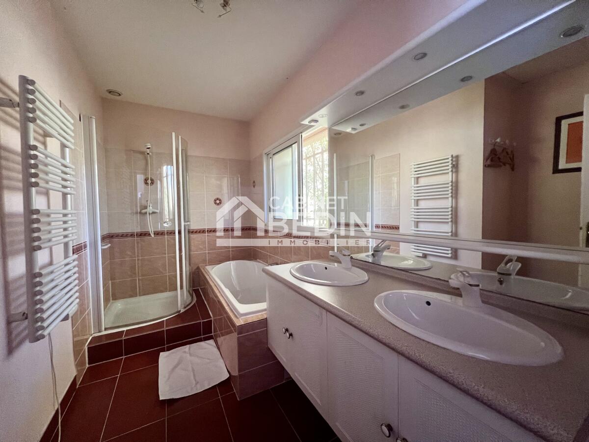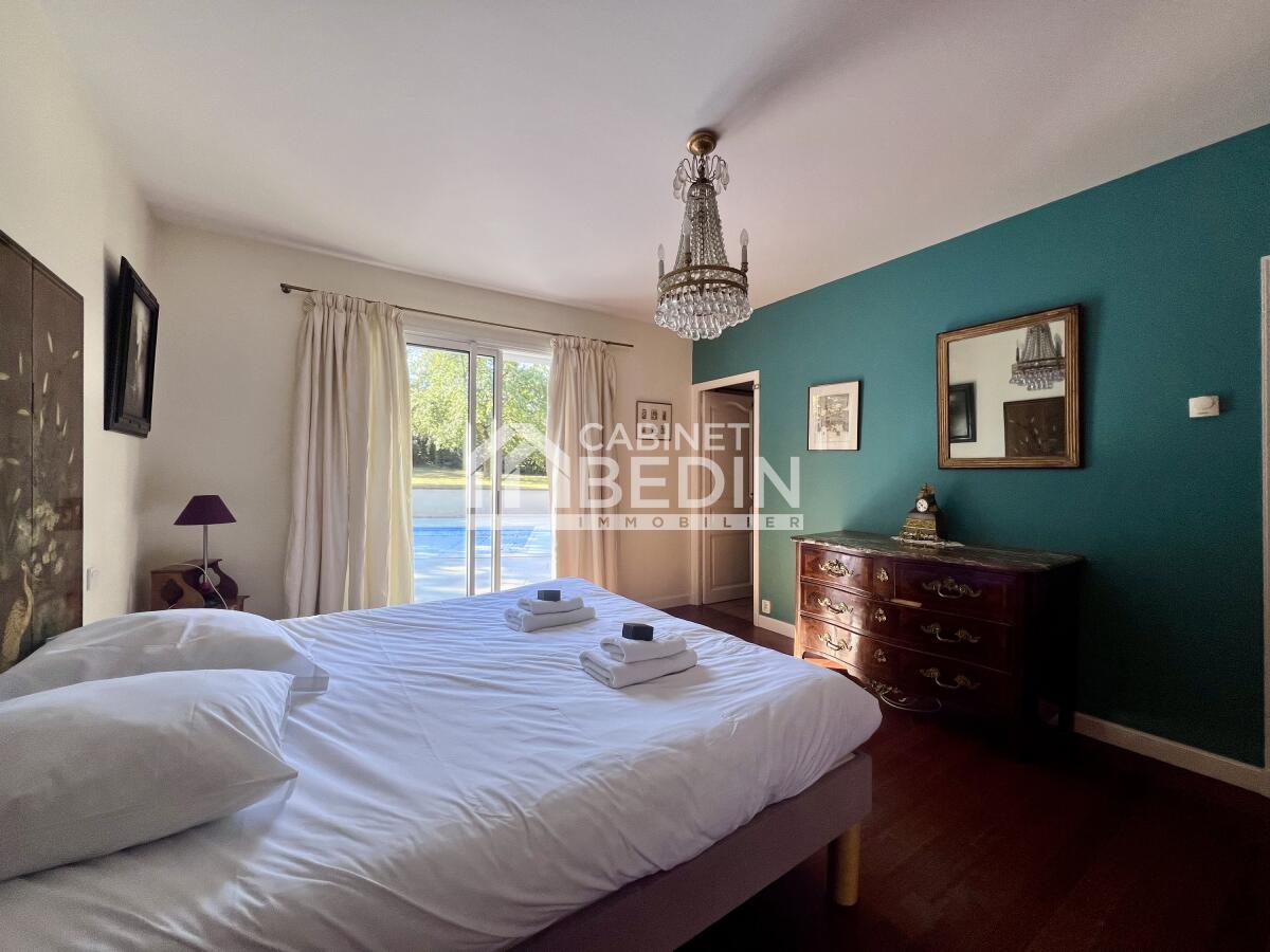 Maison familiale d?exception au c?ur du Golf . Située dans l?un des environnements les plus prisés de Bordeaux, cette élégante propriété de plain-pied offre un cadre de vie unique, alliant confort et sérénité. Dès l?entrée, une vaste pièce de vie baignée de lumière s?ouvre sur une superbe terrasse et une grande piscine, au c?ur d?un jardin paysager et bucolique de plus de 3 000 m². La cuisine, indépendante et fonctionnelle, bénéficie également d?un accès direct sur l?extérieur.