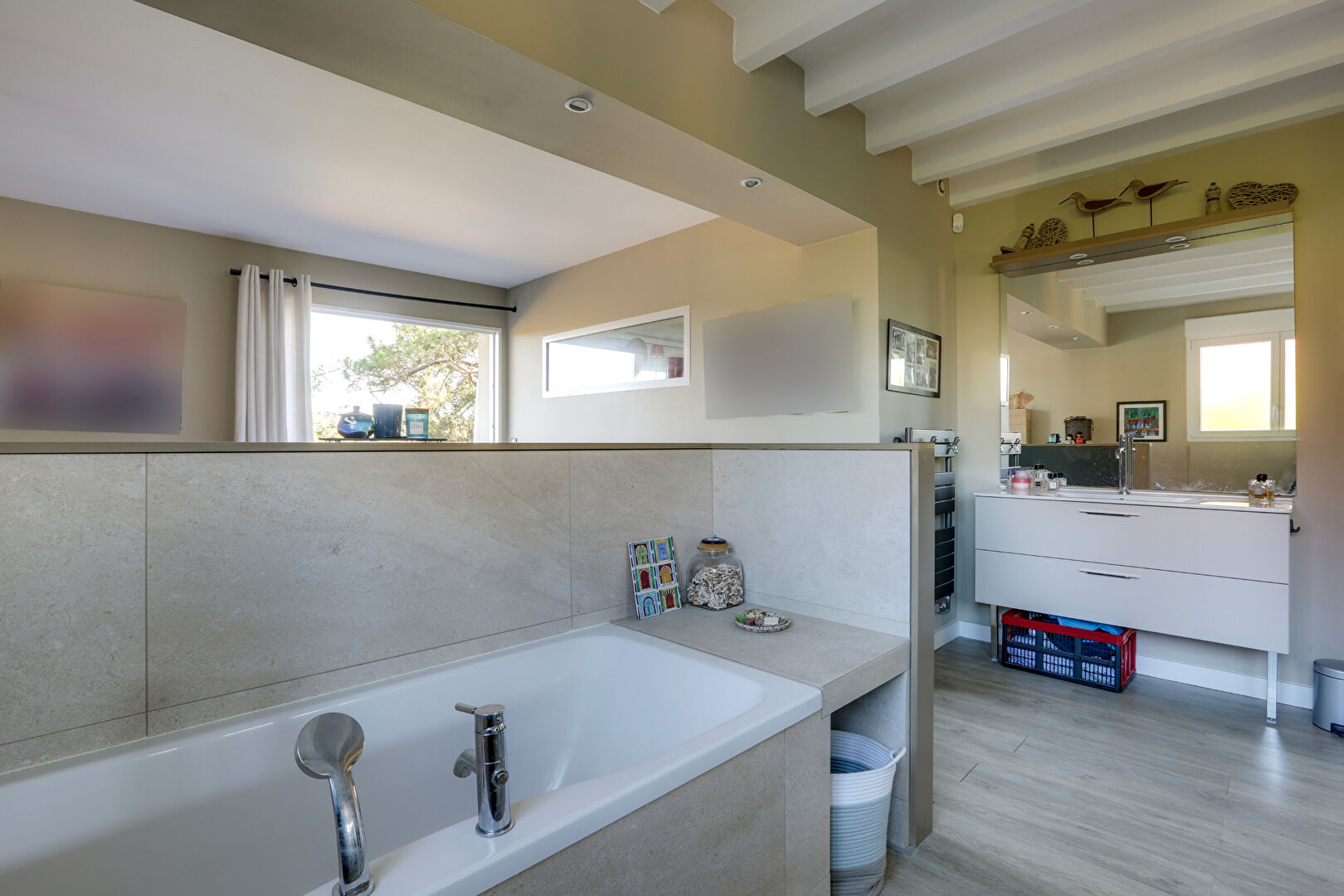 La villa bénéficie par ailleurs d'un système complet de domotique (portail, éclairages, etc.), et d'une exposition Est offrant chaque matin un lever de soleil idyllique sur la pinède.
