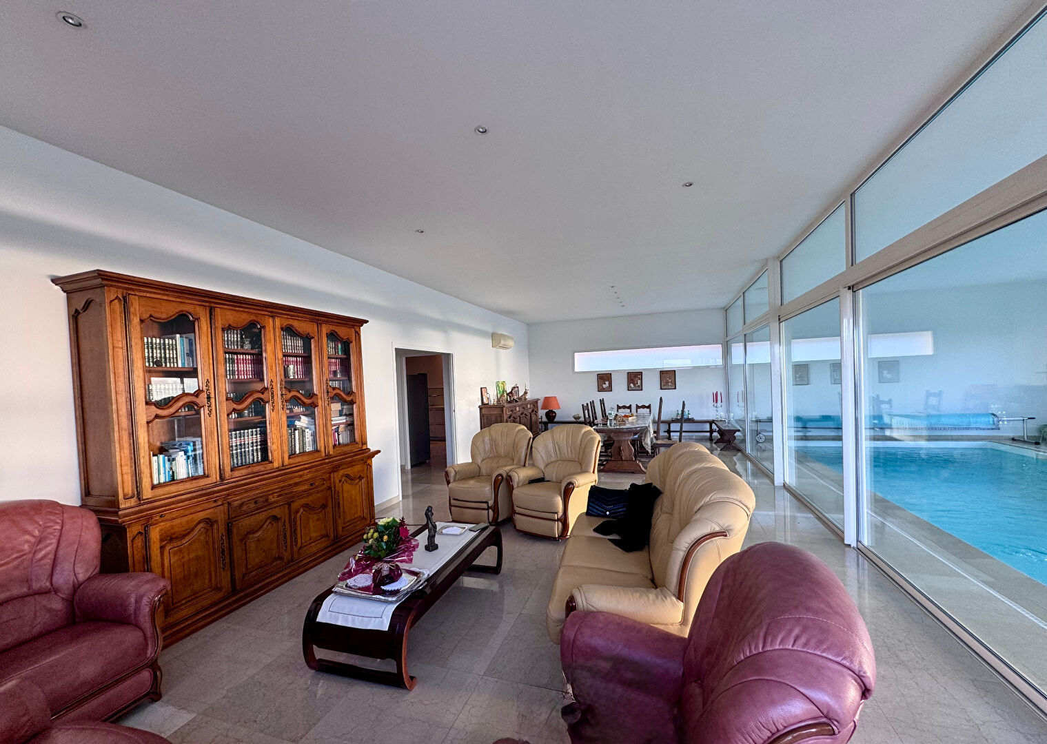 L'espace de vie lumineux et spacieux, s'ouvre par de grandes baies vitrées sur la piscine intérieure chauffée , véritable havre aquatique à profiter toute l'année.avec ouverture sur l'extérieur par de grandes baies vitrées. La vue panoramique sur le golfe et les montagnes sublime chaque instant, créant une atmosphère unique , alliant confort et sérénité.