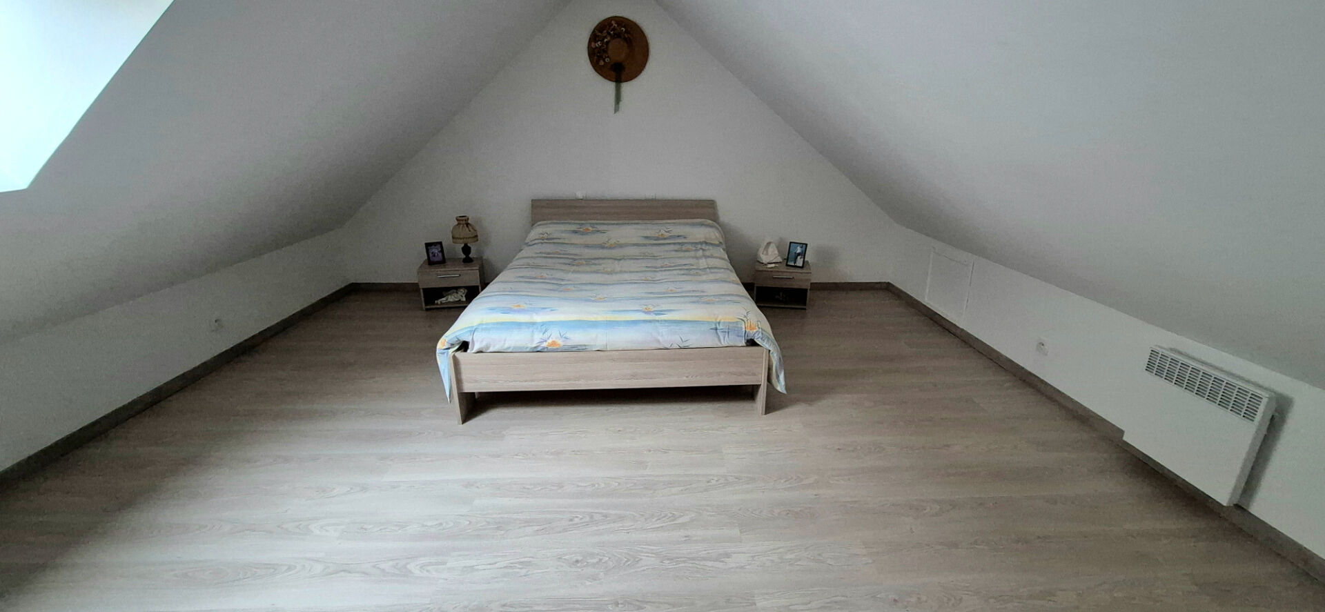 À l'étage : un palier aménagé en espace bureau desservant deux chambres confortables.