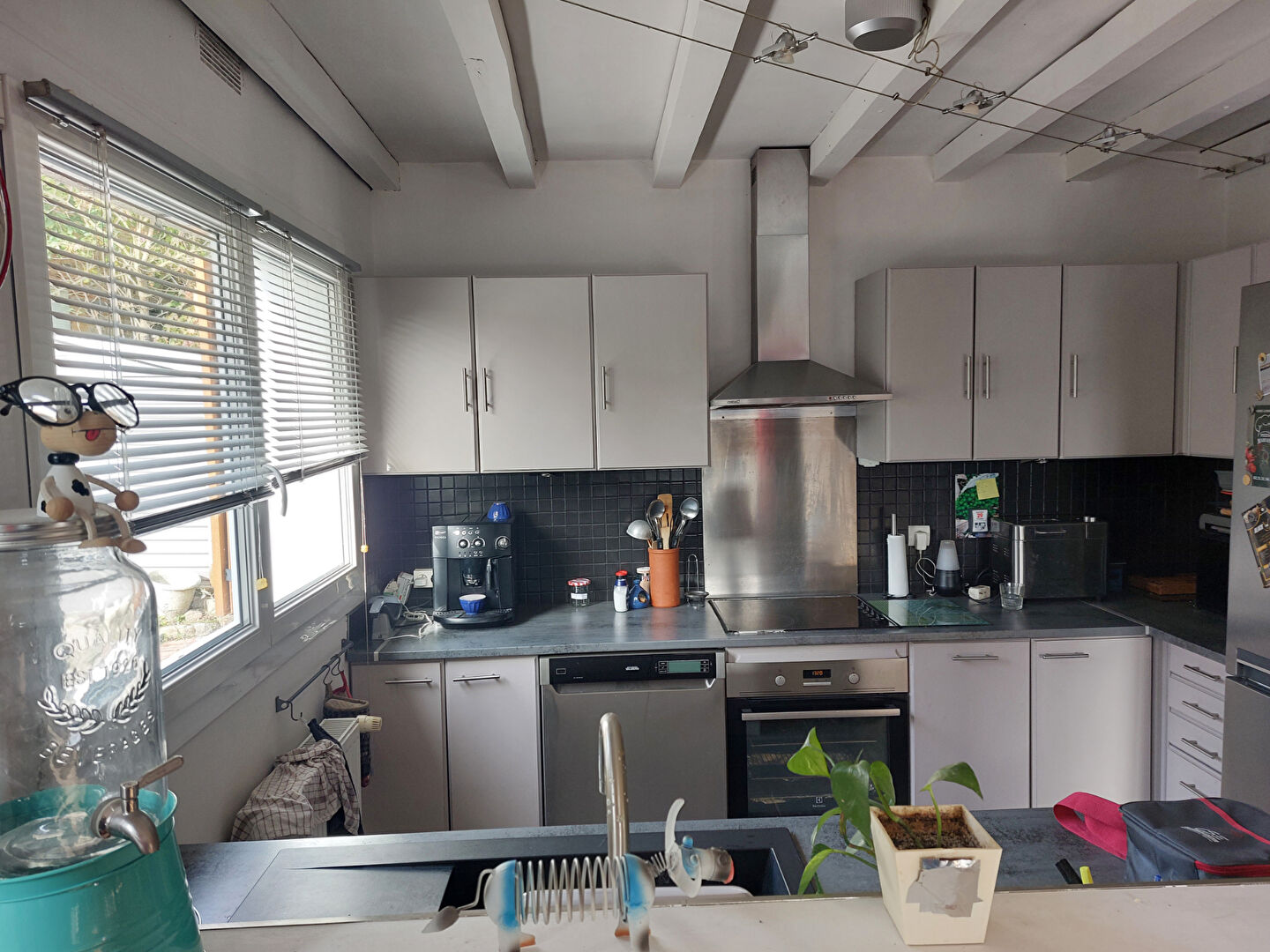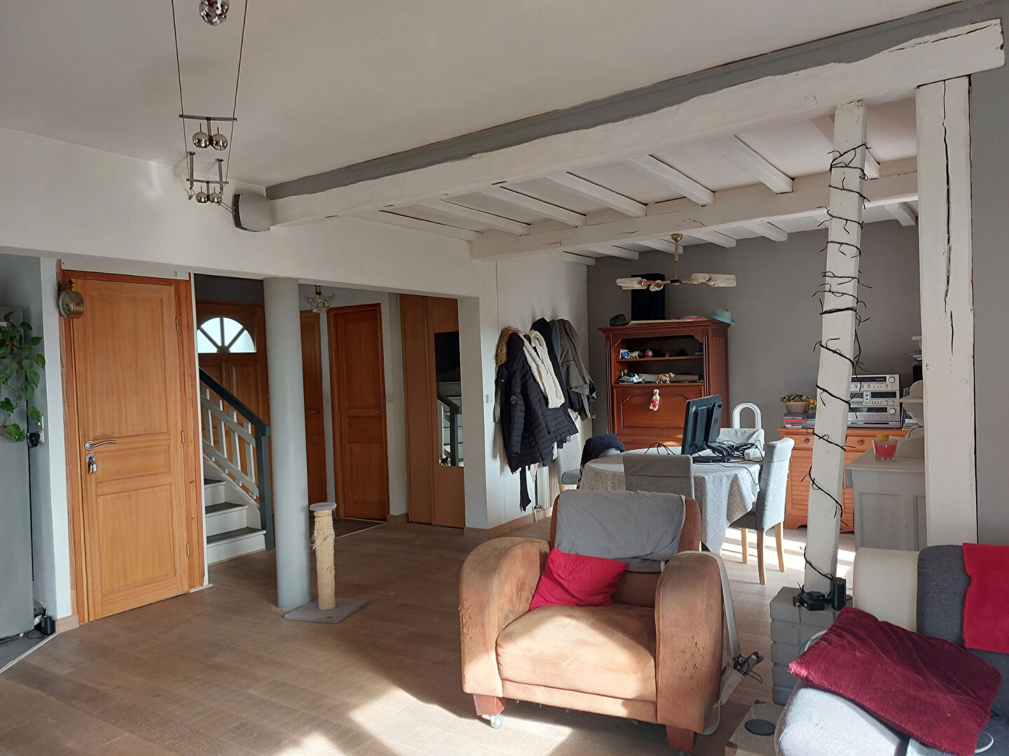 - Au rez de chaussée d'une entrée donnant sur une belle pièce de vie de plus de 40 m2 avec un poêle à bois et sa cuisine ouverte, une salle d'eau, un WC séparé.