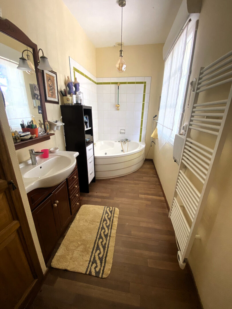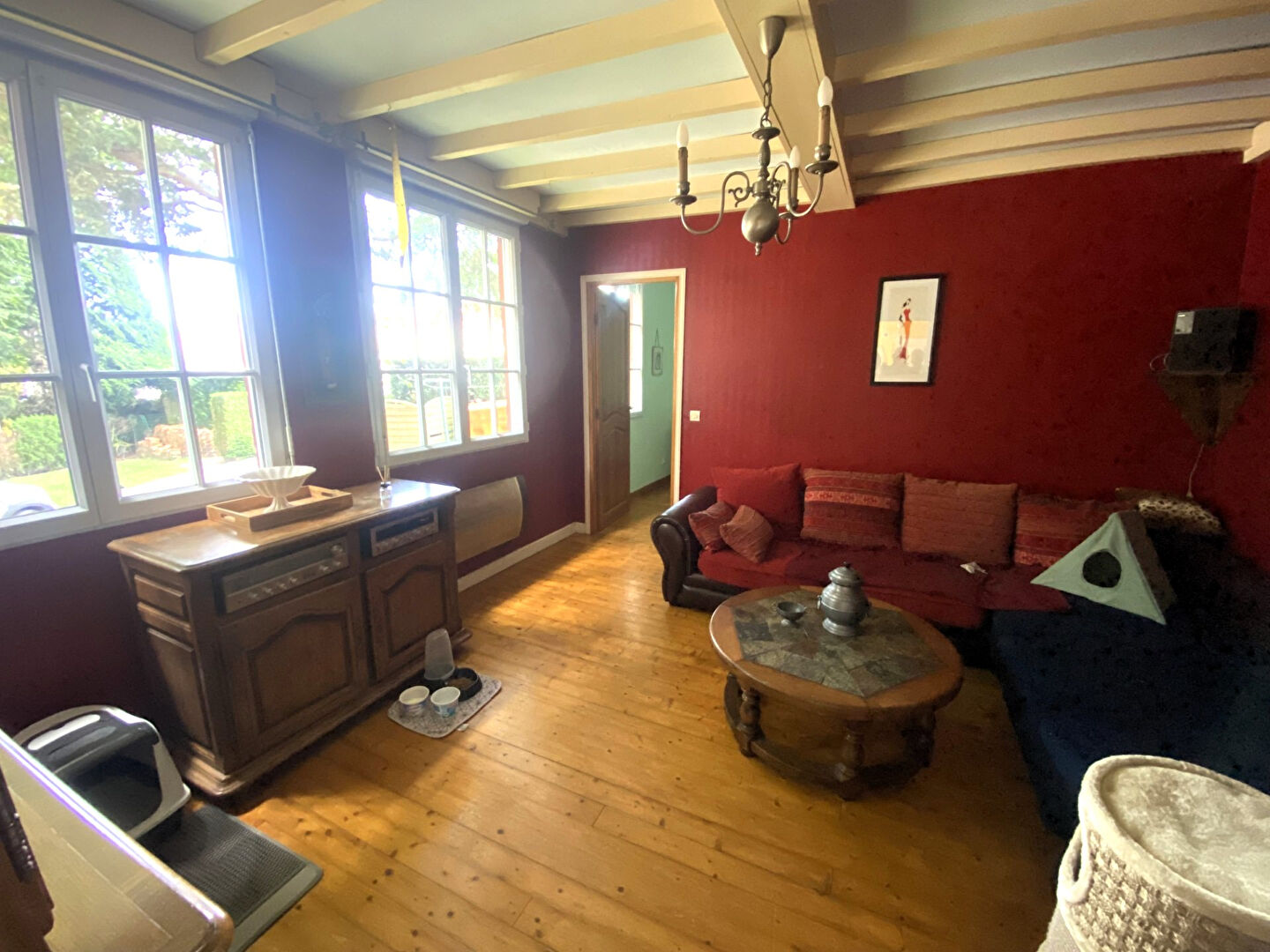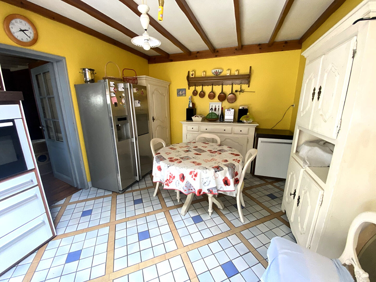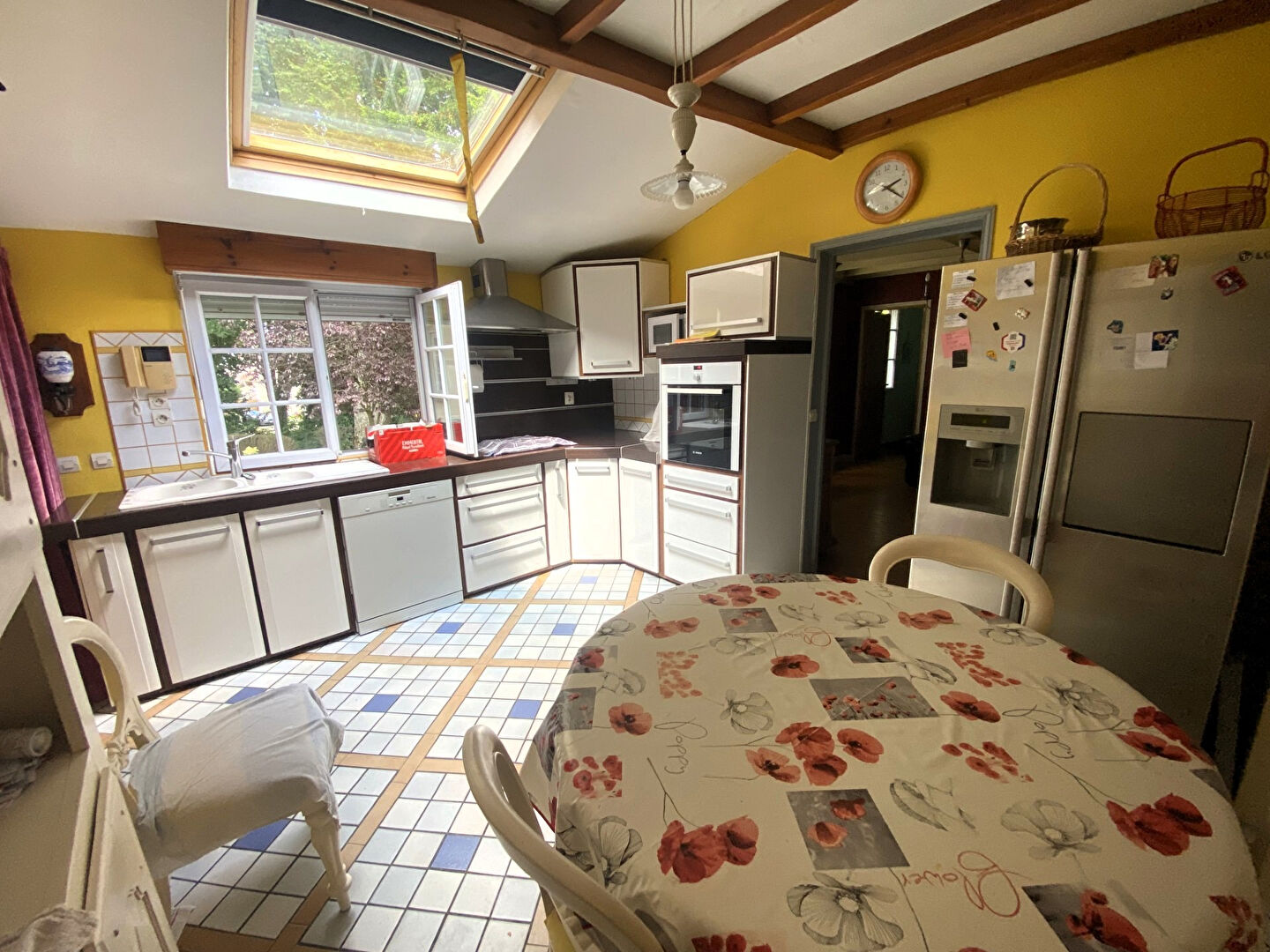 Maison individuelle de plain pied comprenant : un hall d'entrée, séjour avec cheminée insert à poêlé, un grand salon, une cuisine aménagée et équipée, une salle de bains, une salle d'eau, une lingerie, 3 chambres.
