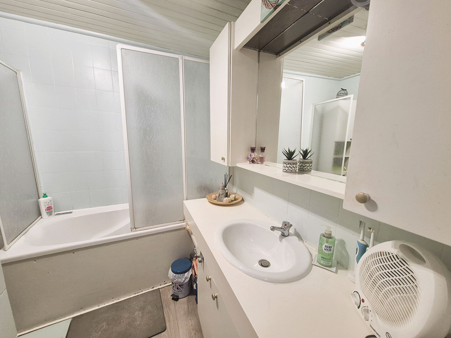 Cette maison à la géographie originale se compose, au rez-de-chaussée, d'un hall d'entrée, d'un large séjour, d'une grande cuisine donnant sur le jardin, d'une salle de bain avec baignoire et d'une véranda.