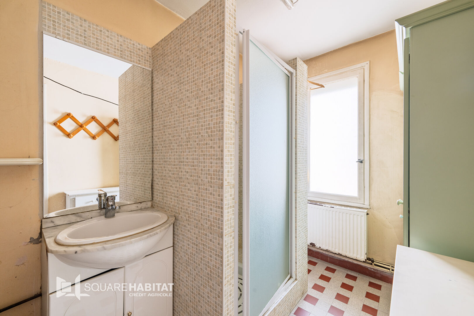 Actuellement, elle profite d'un espace de vie au rez-de-chaussée composé d'une entrée distribuant un salon, une cuisine avec accès au jardin et d'une salle d'eau.