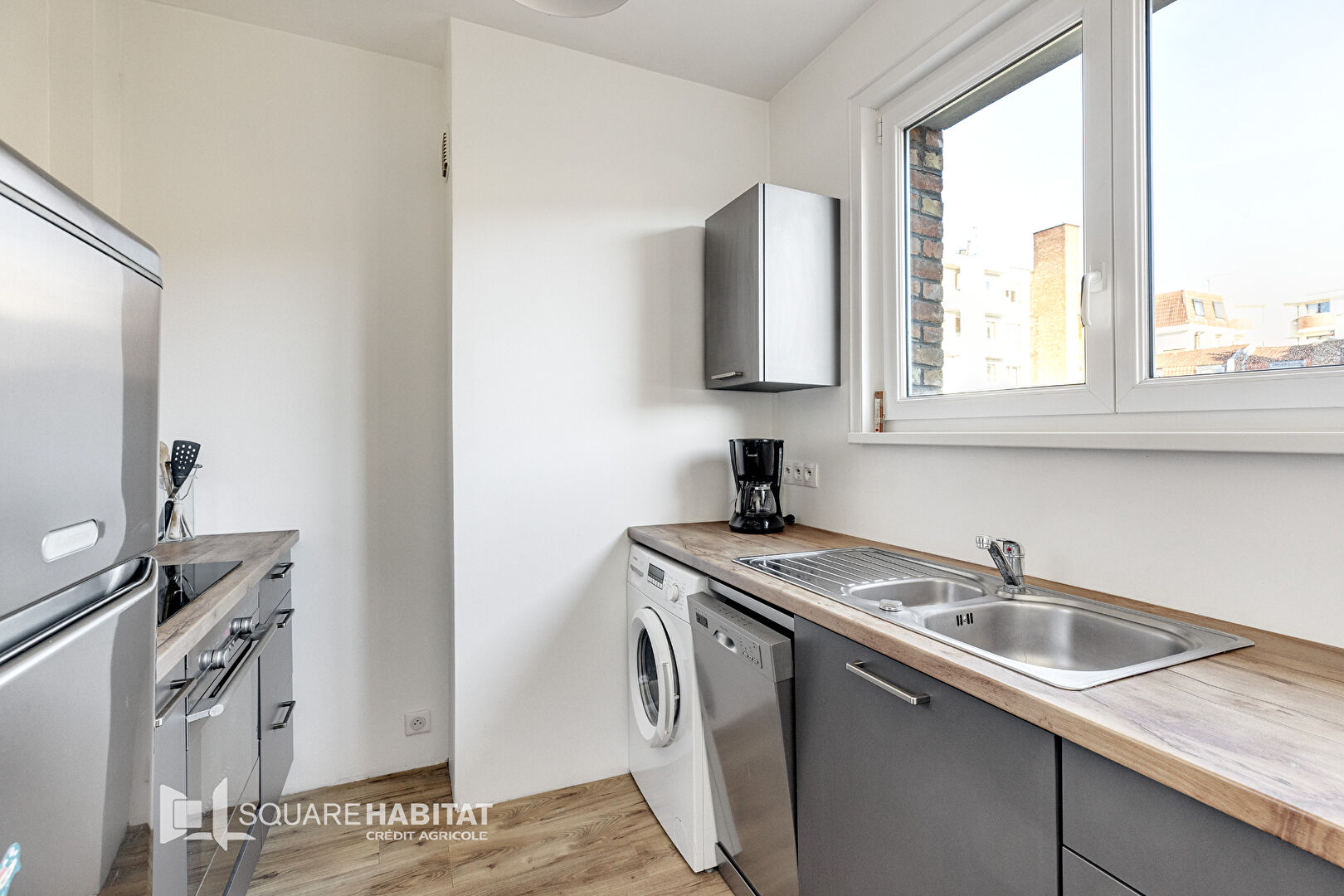 Il est composé d'un hall d'entrée avec placards, d'un séjour parqueté très lumineux, d'une cuisine équipée moderne, et de 2 grandes chambres ainsi que d'une salle de bains.