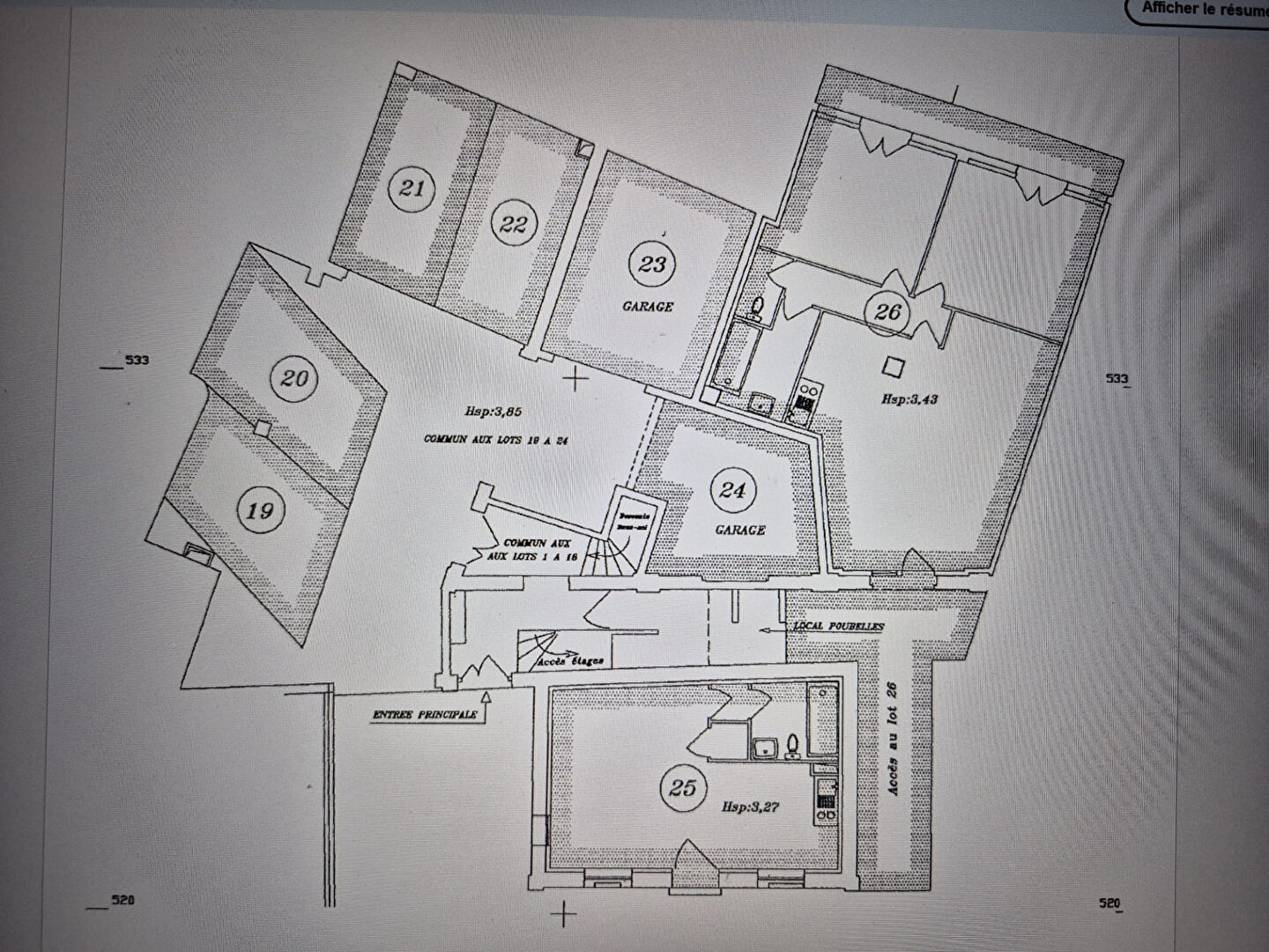 Copropriété de 46 lots. Charges annuelles de 244Euro.