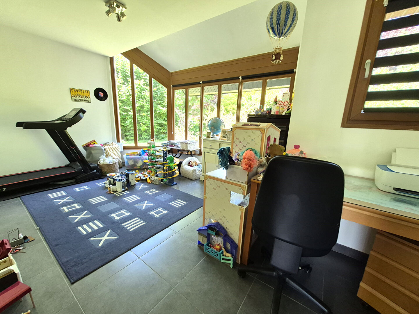 En rez de chaussée se trouve également un bureau d'environ 17m² et un garage double avec porte automatisée de 40m².