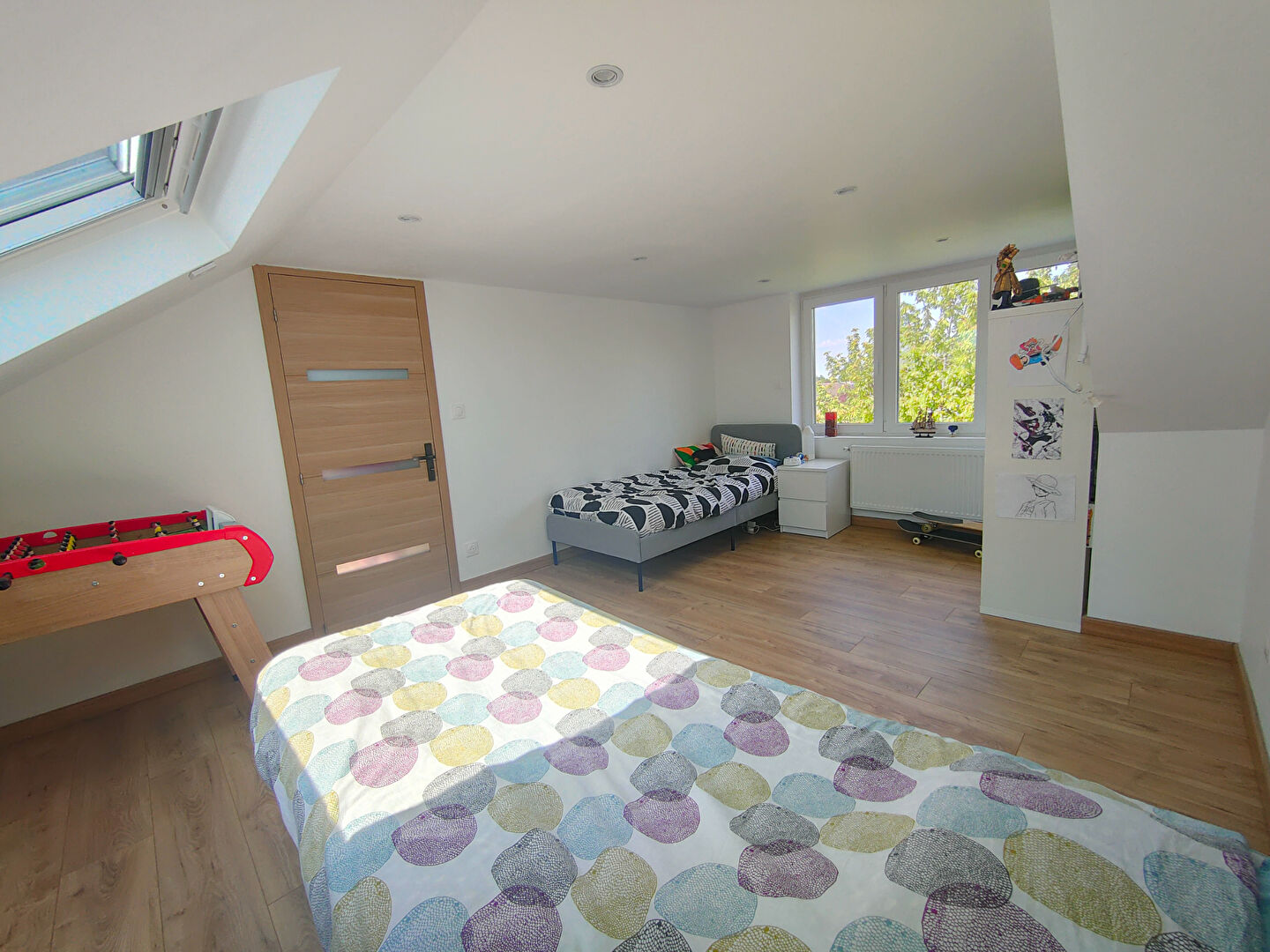 Au premier étage le palier dessert 3 chambres ainsi qu'une salle de bains avec baignoire et douche.