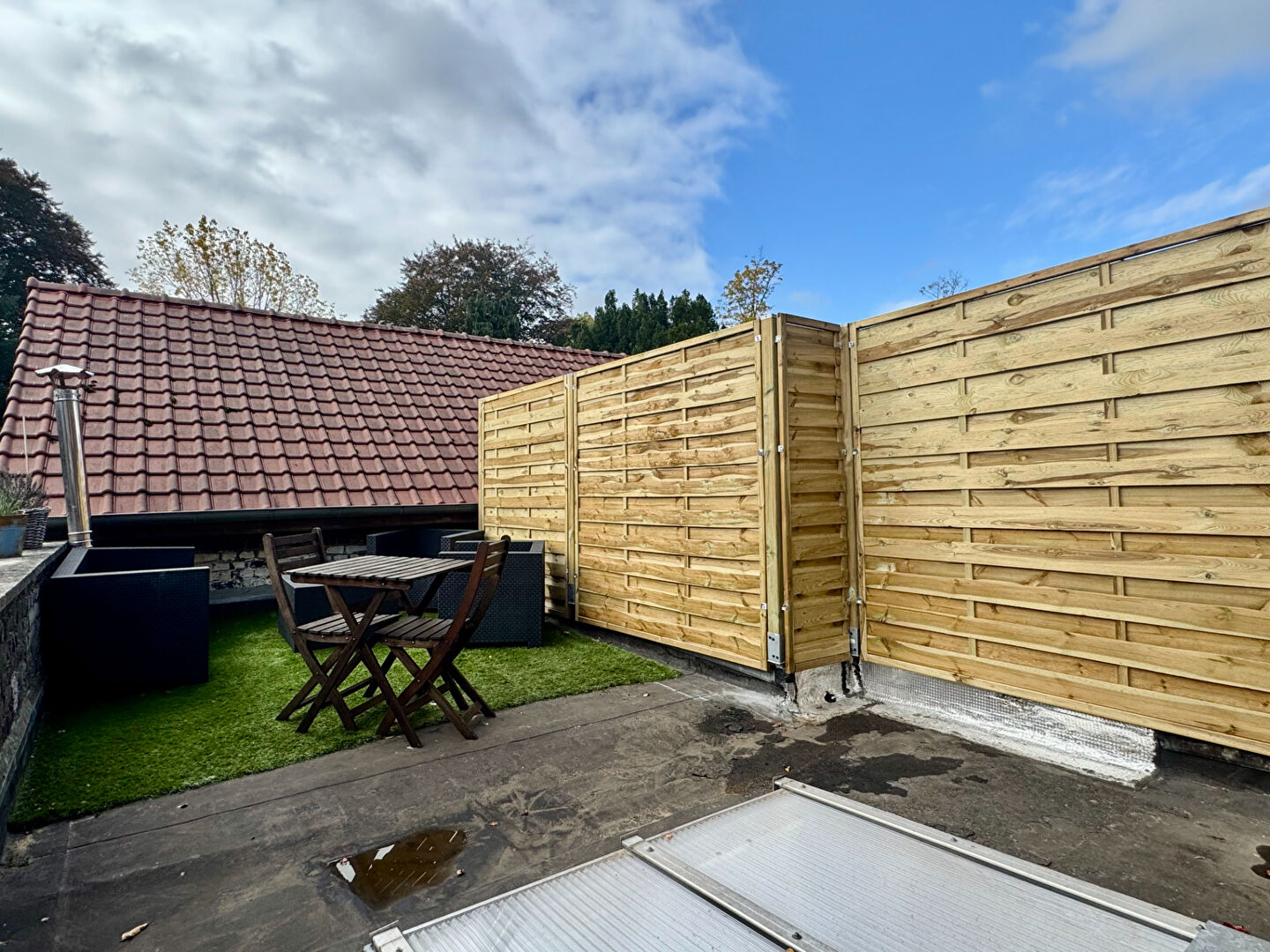 Au premier étage, un palier donne sur une spacieuse chambre, une salle de bains ainsi qu'une terrasse suspendue bien exposé et à l'abri des regards.