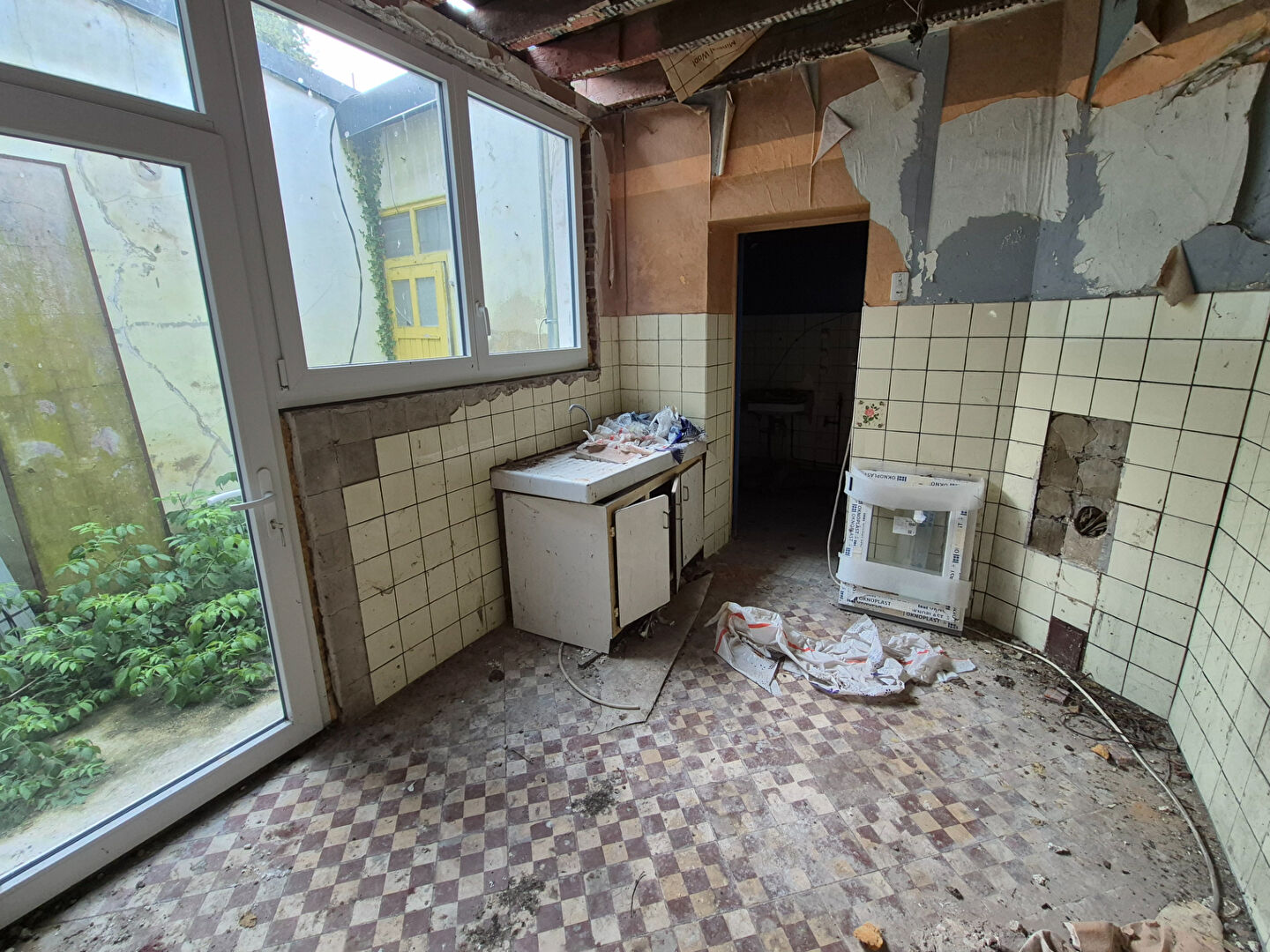 Maison de ville à rénover, située à proximité des écoles et commerces, composée d'un salon, une salle à manger, une cuisine donnant sur une courette, une salle de bains, à l'étage 2 chambres et l'accès à un grenier aménageable. Double vitrage PVC récent.