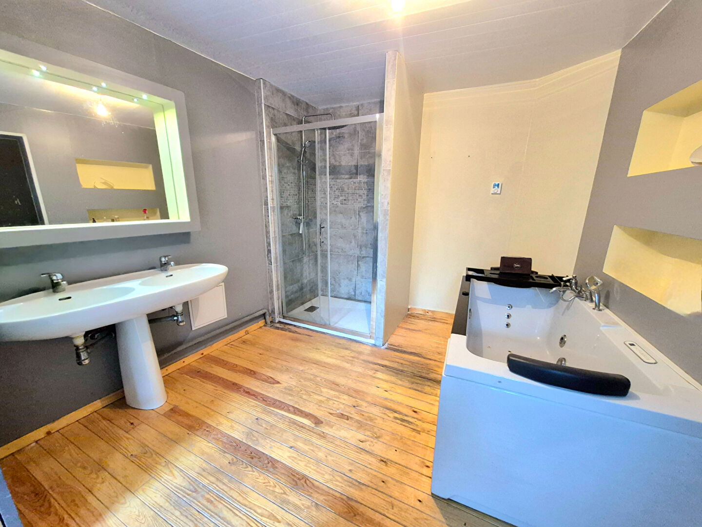 L'entrée mène à une spacieuse pièce à vivre avec insert à feu de bois, une cuisine semi-ouverte équipée et fonctionnelle, une salle à manger, une large salle de bain, une buanderie et des WC.