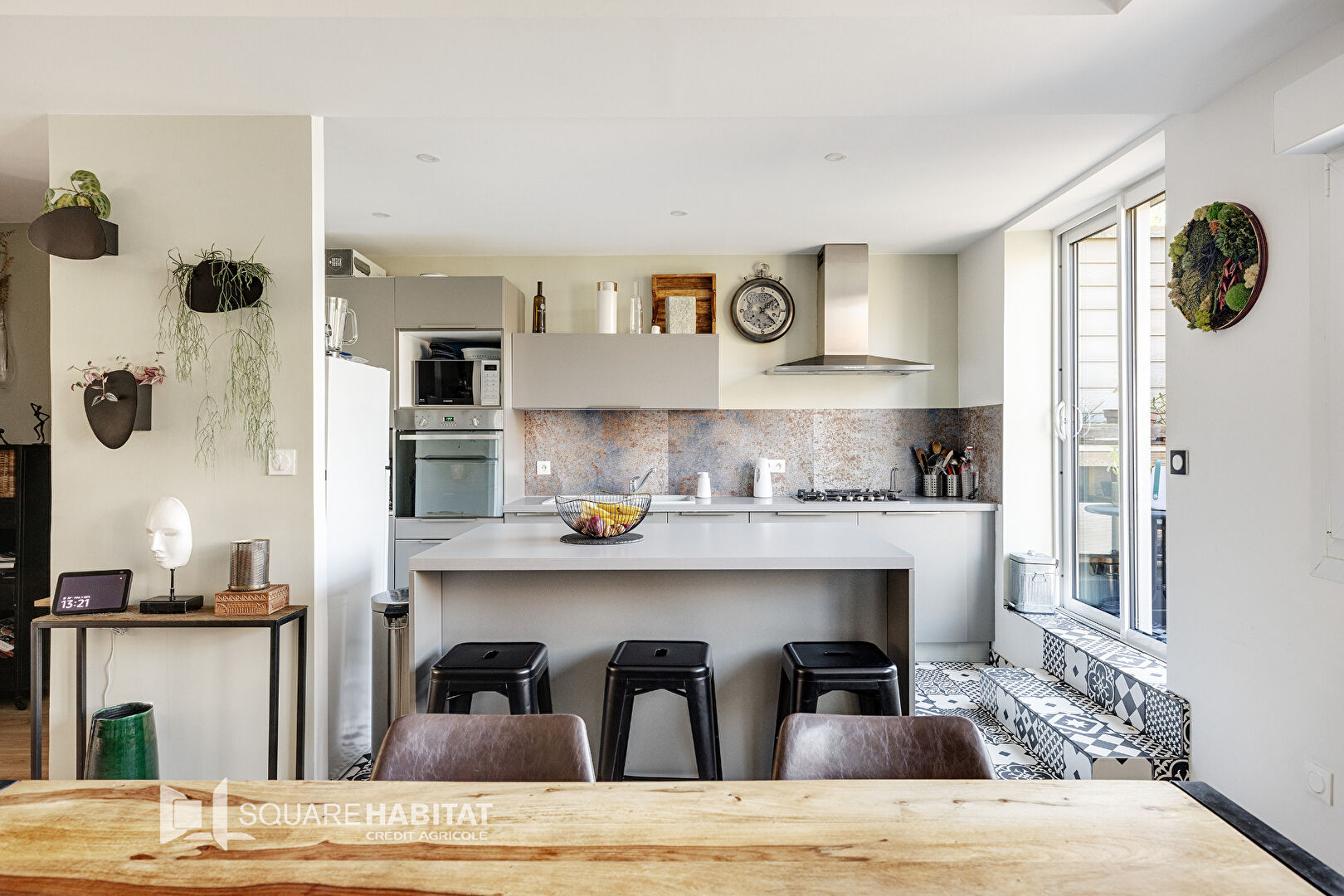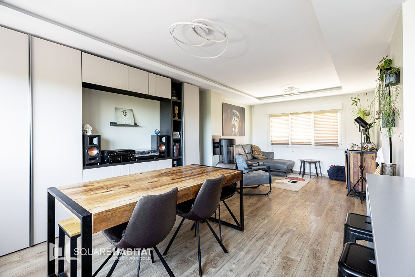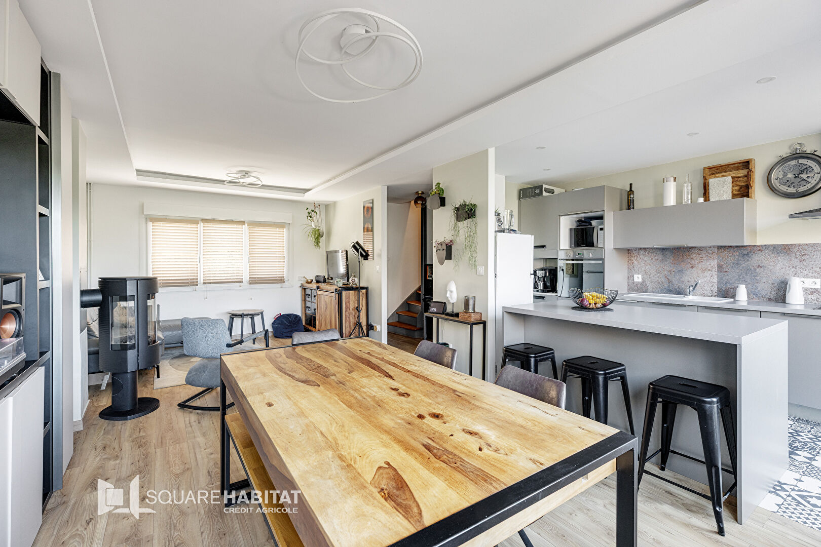 Au premier étage, retrouvez une grande pièce de vie très lumineuse d'env 35m² avec un salon-séjour, agrémenté d'un poêle à bois, ouvert sur une cuisine équipée américaine. L'ensemble donnant vue sur une terrasse suspendue avec un accès sur le jardin.