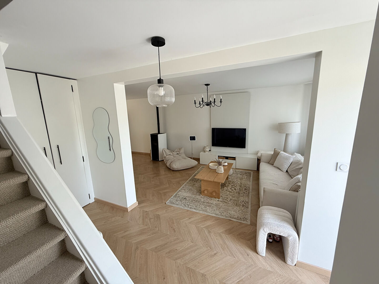 Au rez-de-chaussée, vous trouverez un très beau salon avec un poêle, une superbe cuisine équipée et une salle à manger lumineuse donnant sur le jardin.